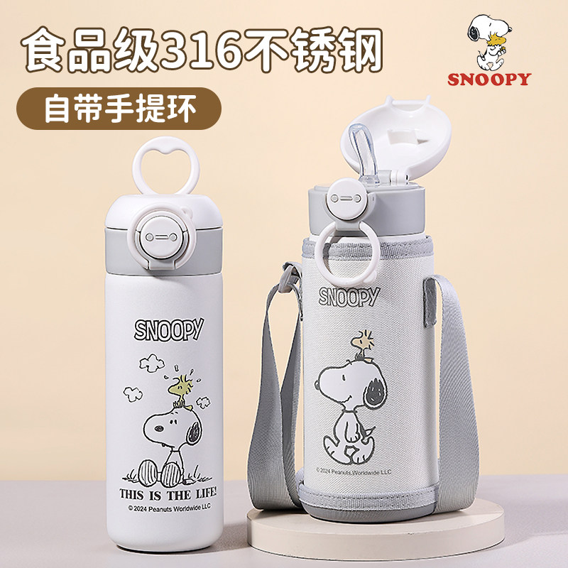 史努比吸管保温杯孕产妇水杯新款2025高颜值儿童上学专用学生杯子