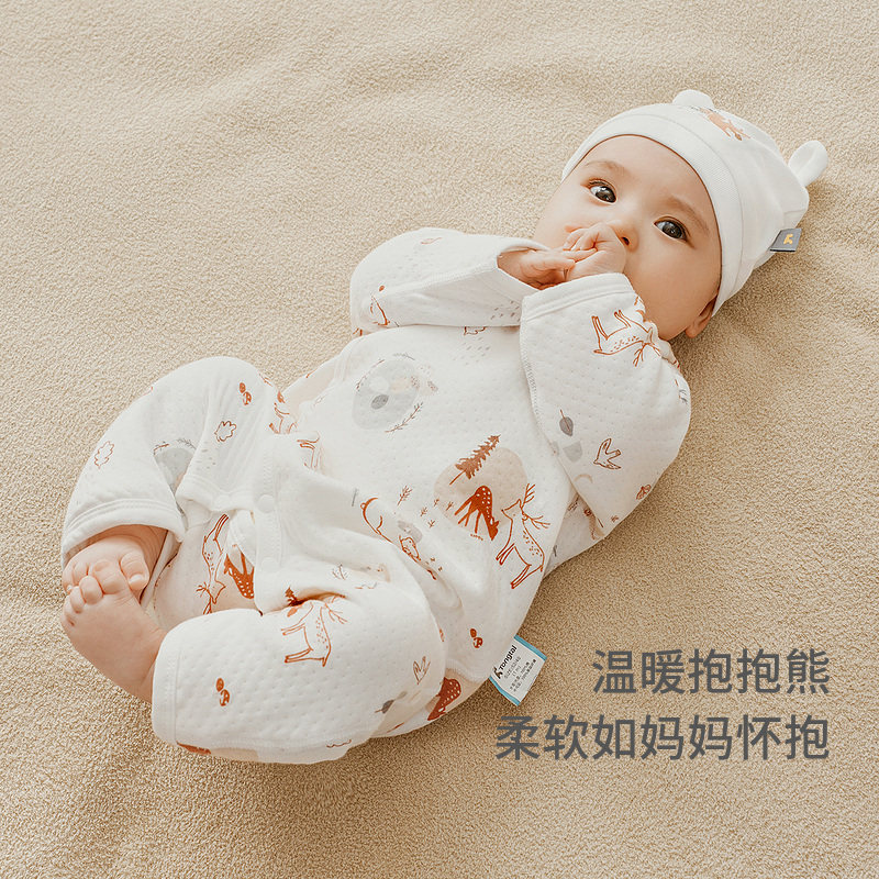 童泰新生婴儿衣服秋冬季纯棉初生宝宝连体衣保暖睡衣和尚服哈衣
