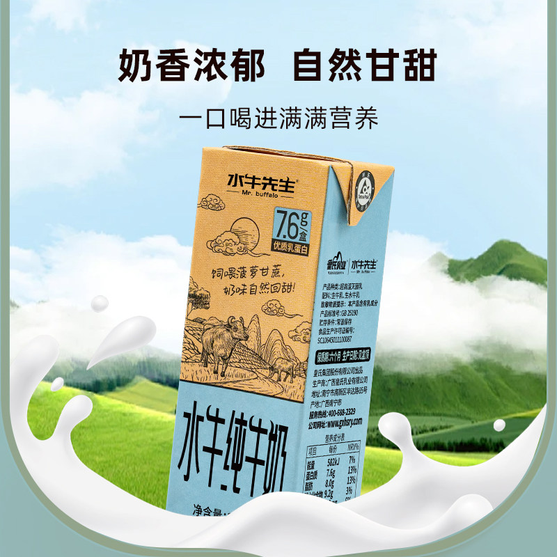 皇氏乳业水牛纯牛奶200ml*20盒广西水牛奶儿童学生高钙营养奶整箱