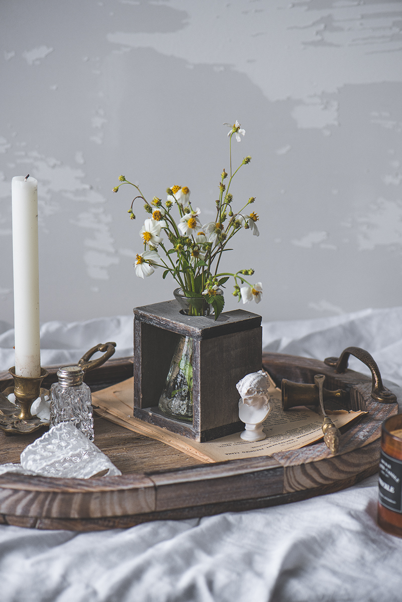 美式乡村木制复古创意水培插画玻璃花瓶家居饰品摆件