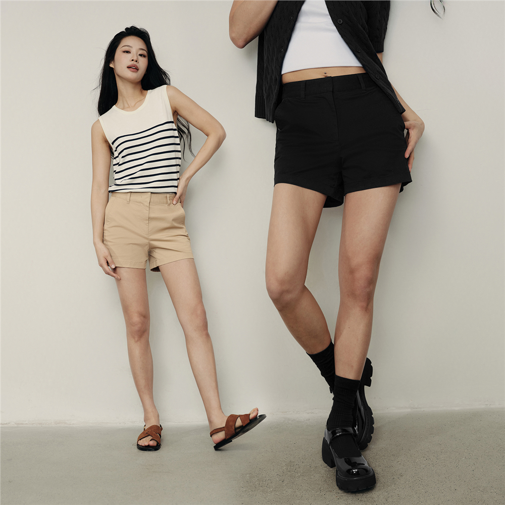 【韩国明星同款】佐丹奴夏季弹力棉暗门筒中腰休闲短裤女05405513