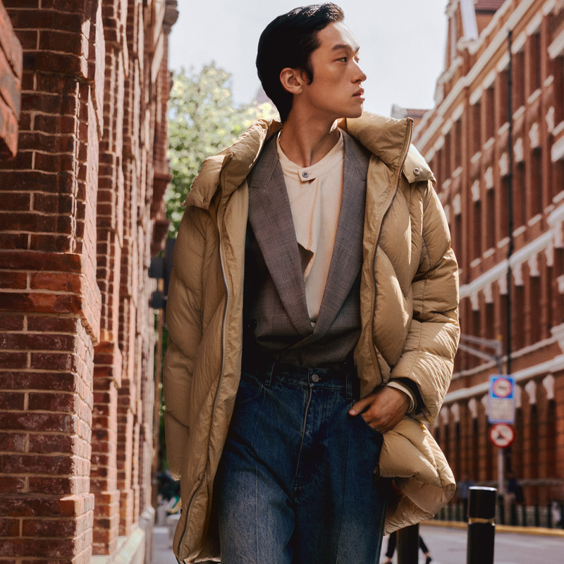速写outlets奥莱男装秋折扣新品羽绒服宽松连帽中长款休闲外套潮