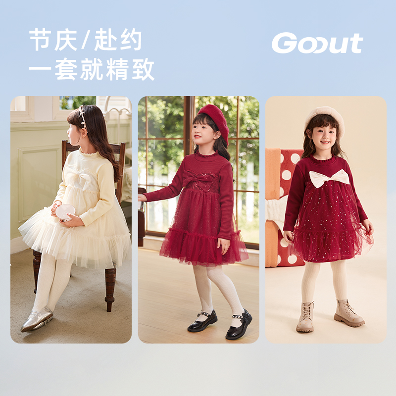 [远红外]儿童红色周岁礼服网纱裙公主裙女童秋冬宝宝生日宴连衣裙
