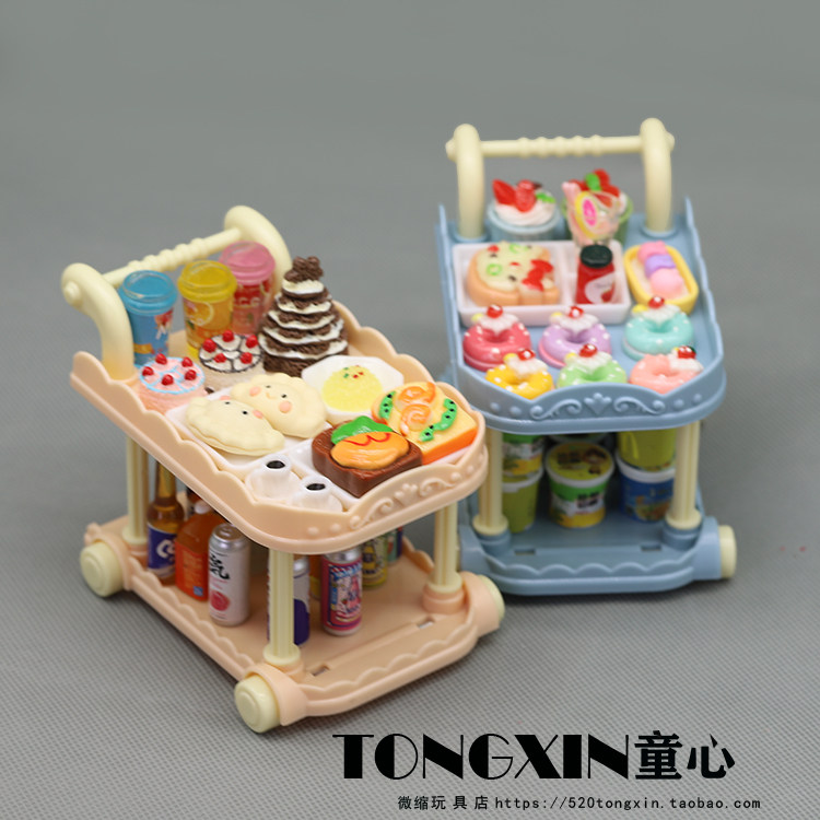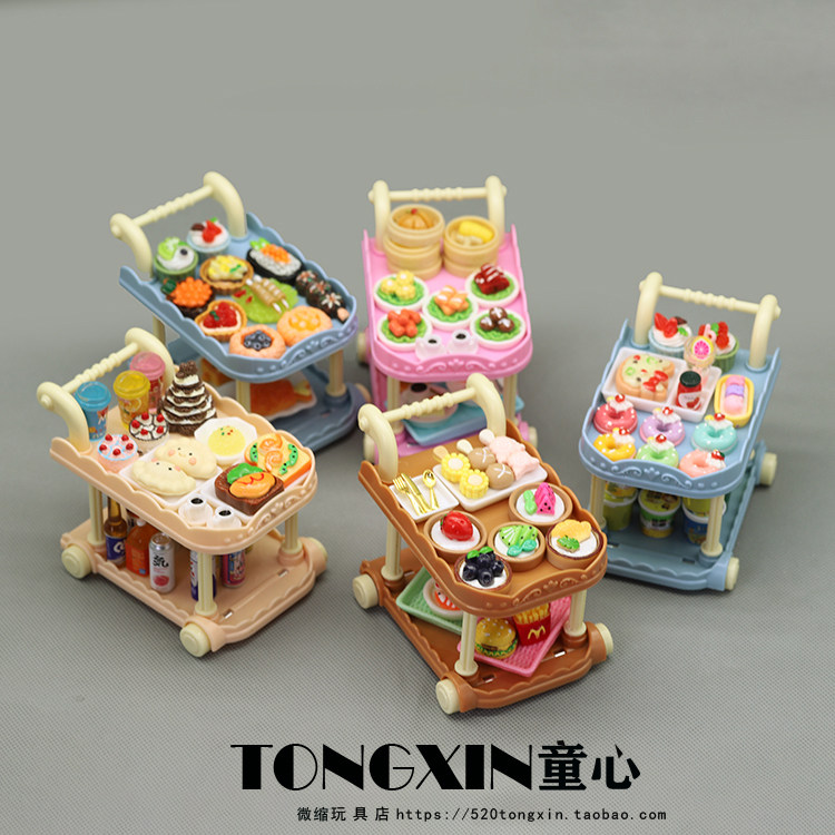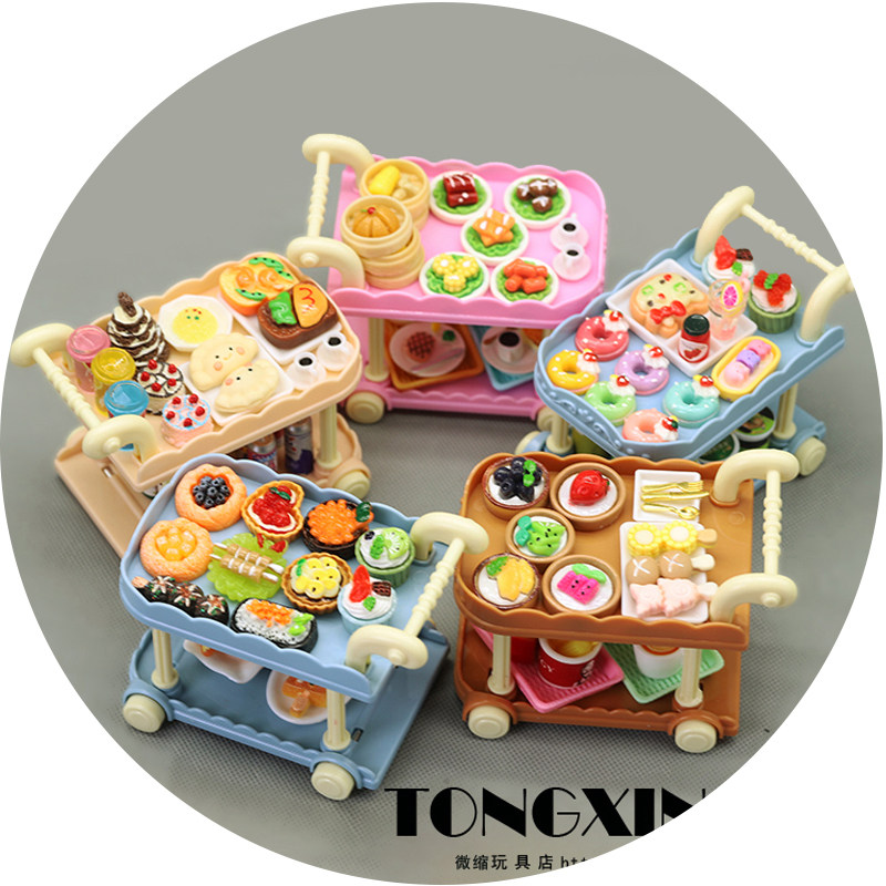 食玩小餐车手推车微缩厨房过家家迷你食物摆件娃娃屋模型儿童玩具