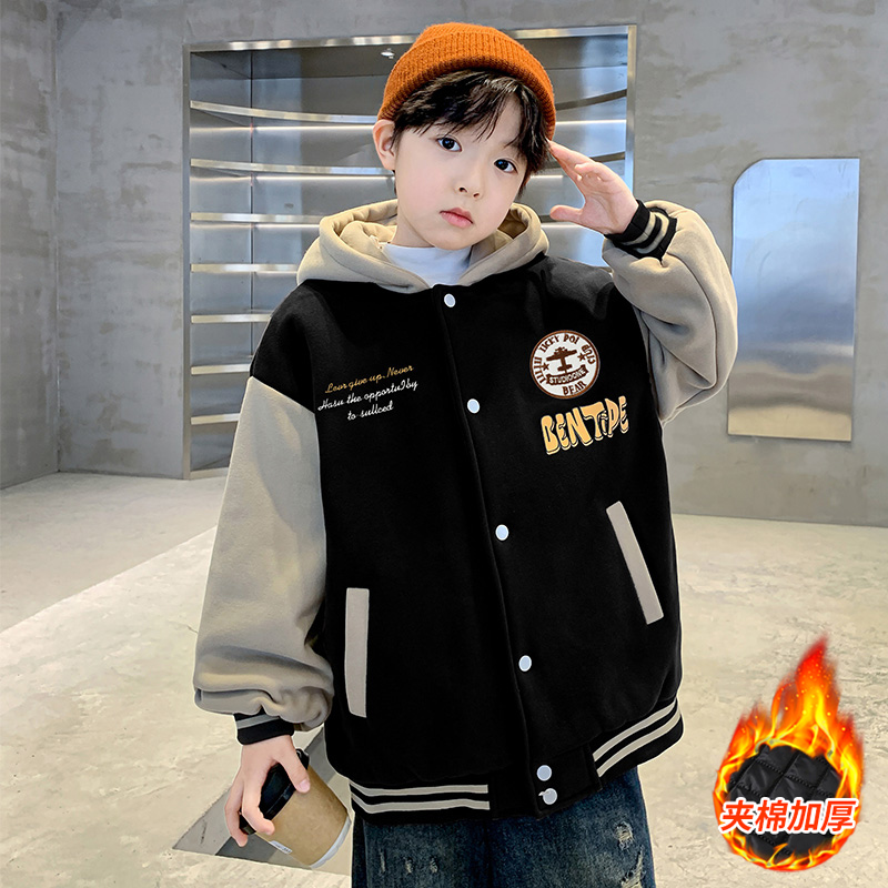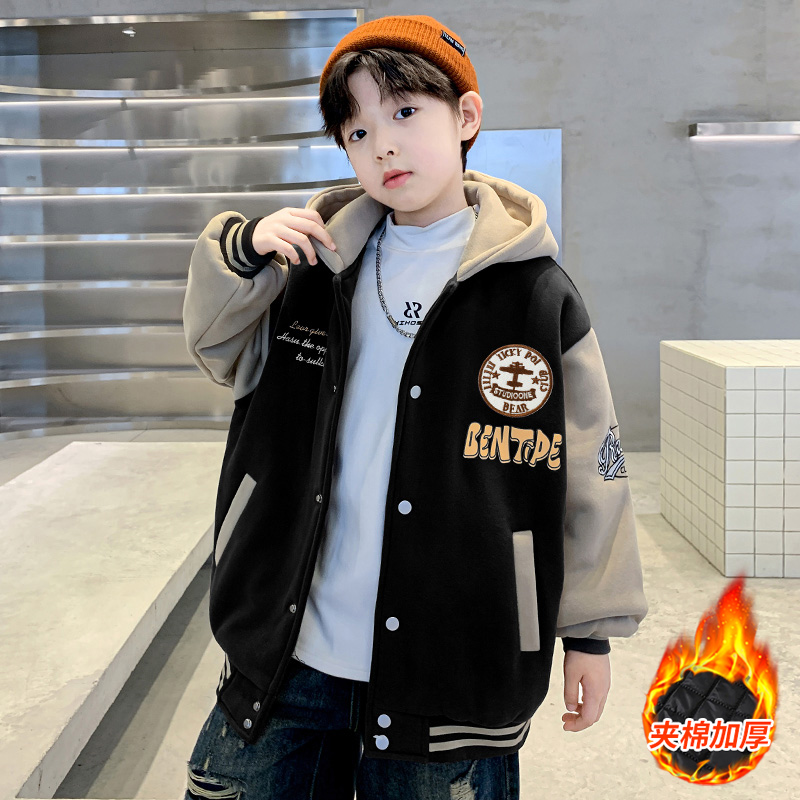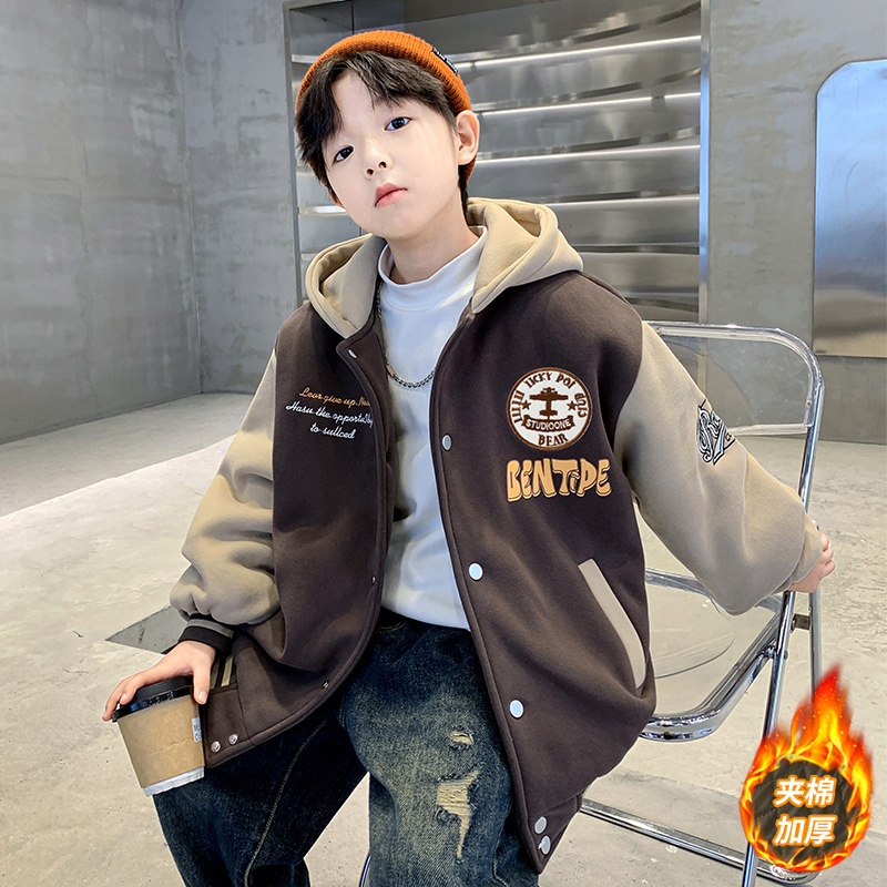 儿童装男童外套秋冬款2025新款加厚夹棉棒球服休闲中大童酷帅冬季