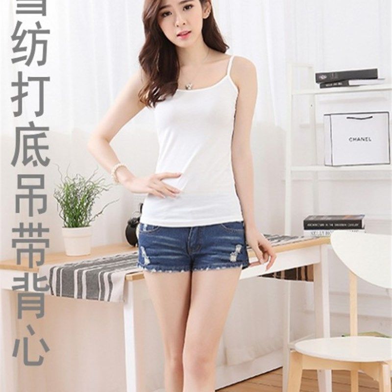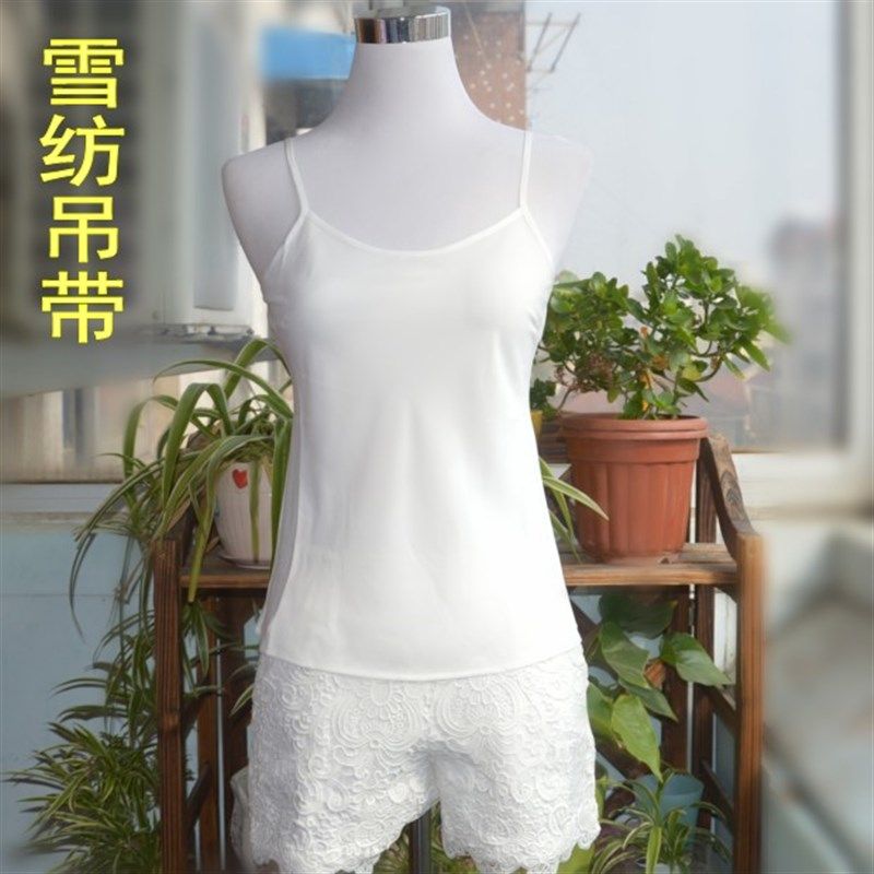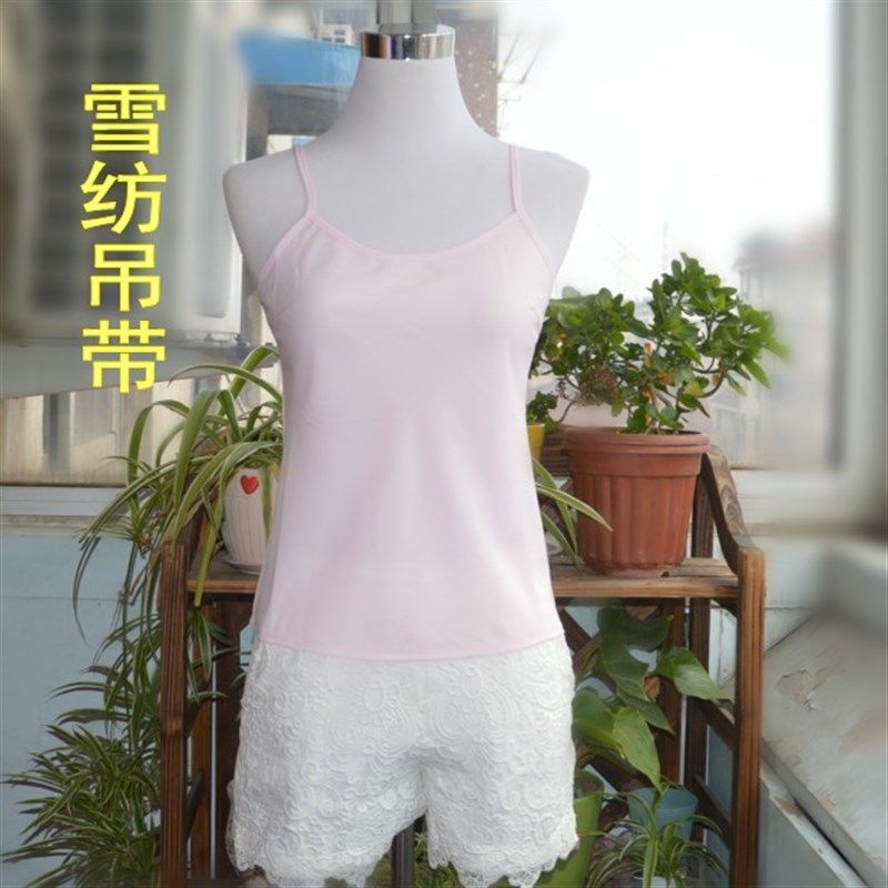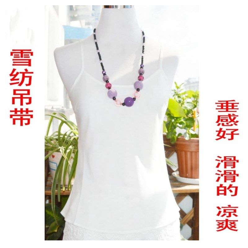 单层春夏秋修身显瘦打底衫雪纺吊带背心内搭短款可调节圆领女上衣