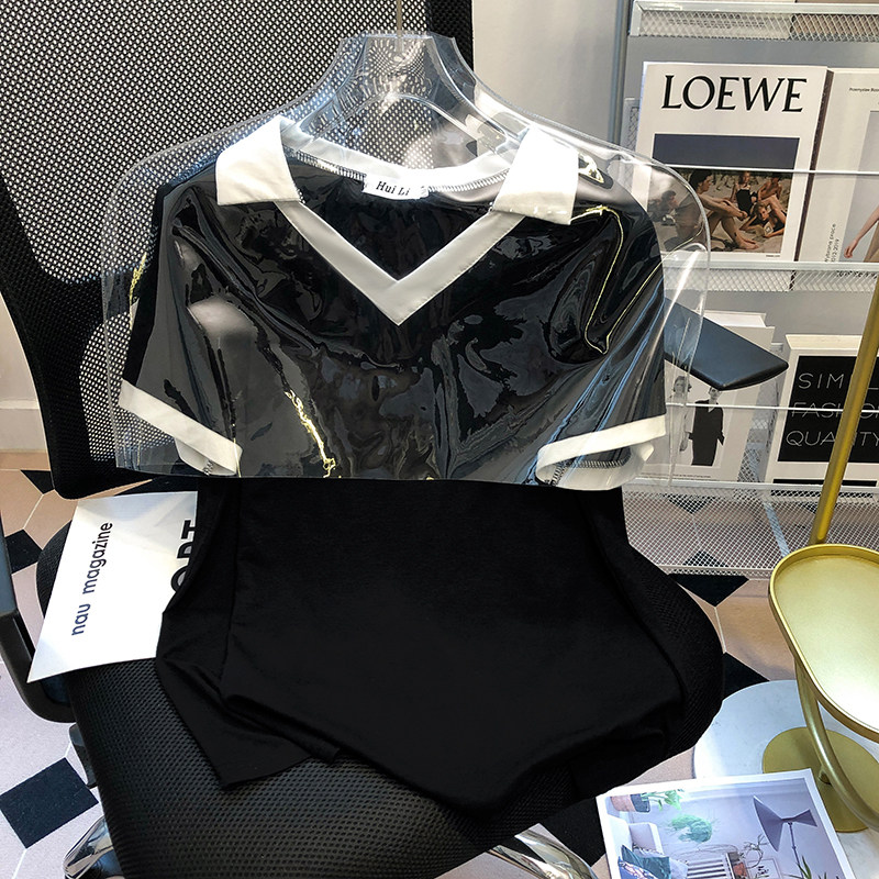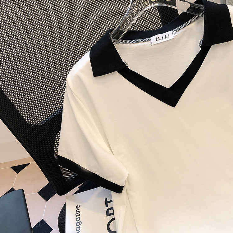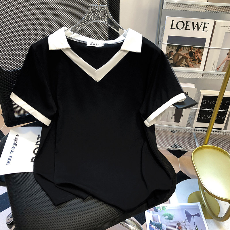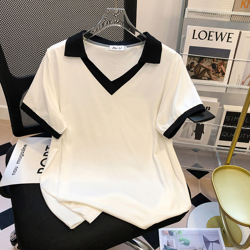 特大码女装韩版夏季新款洋派V领短袖t恤300斤胖mm百搭遮肚子上衣2