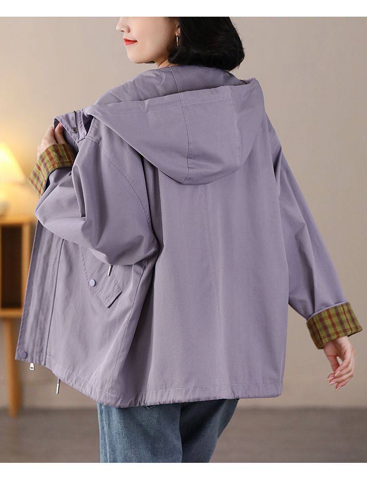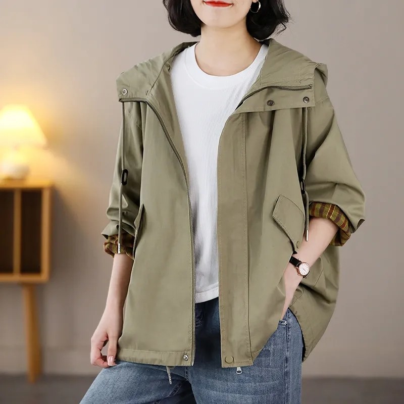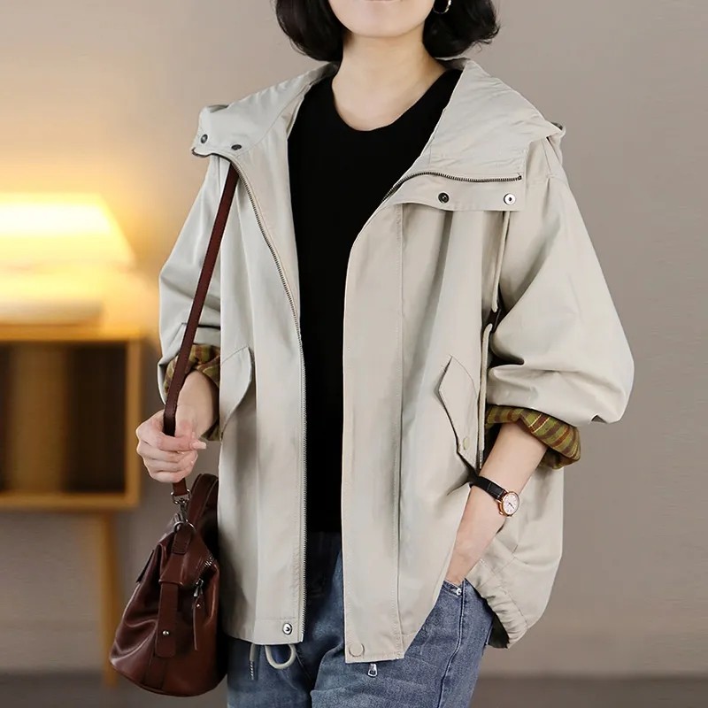 爆款连帽风衣女文艺百搭韩版大码宽松显瘦2025春秋季长袖休闲外套