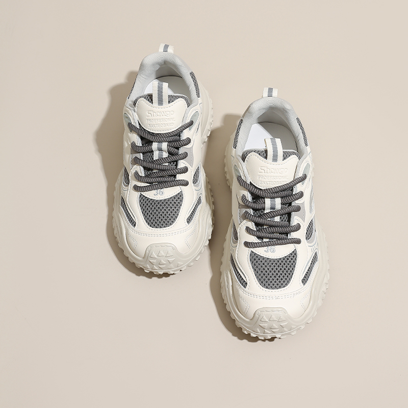 Baidu百渡2025新款春厚底增高老爹鞋女透气百搭休闲运动鞋小个子