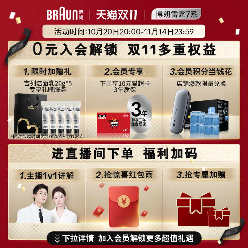 【双11现货开抢】博朗雷霆7系理容电动剃须刀男士往复式刮胡刀