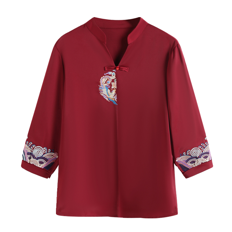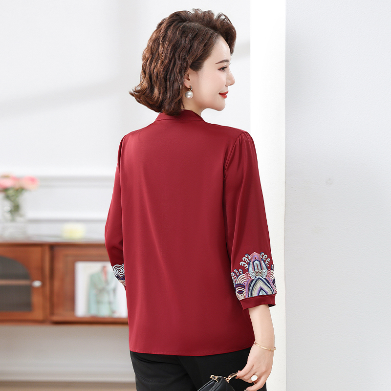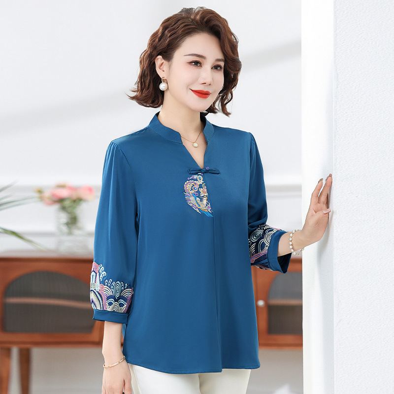中老年女装秋装新款七分袖中式上衣国风两件套妈妈春夏季中袖t恤