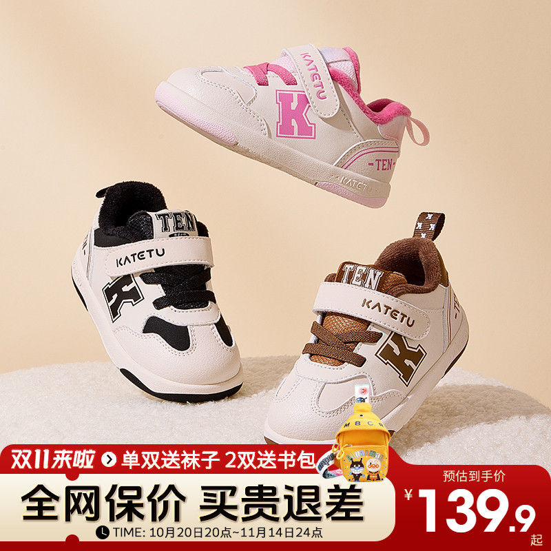 卡特兔童鞋2024新款冬季宝宝加绒学步鞋男童保暖运动鞋女童二棉鞋