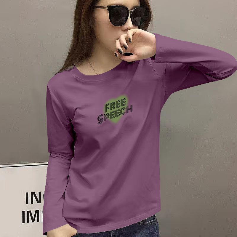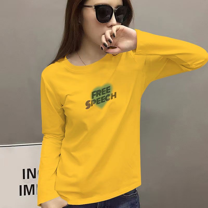 100%纯棉韩版长袖T恤秋冬新款显瘦休闲气质简约潮流韩版上衣女ins