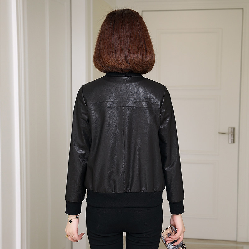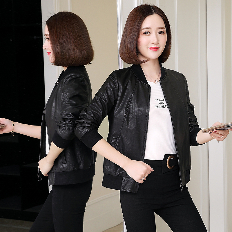 2025春秋装新款棒球服绵羊皮宽松机车皮夹克真皮皮衣女短款小外套