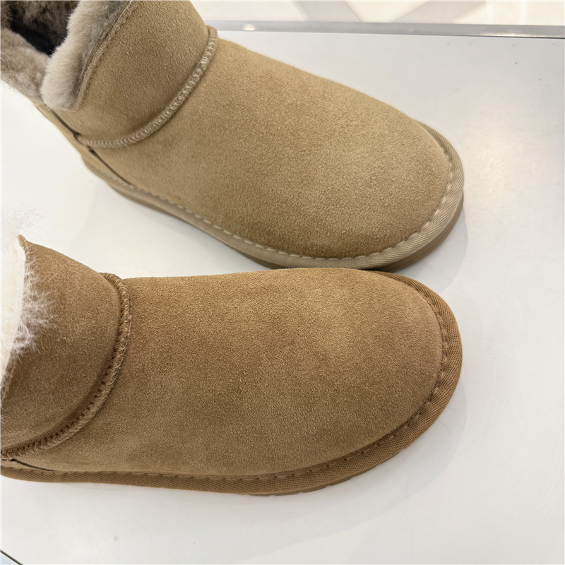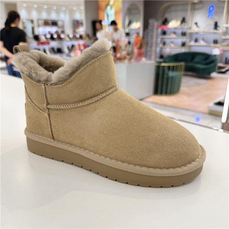 百田森雪地靴保暖舒适平底短靴子2024冬款新款牛皮加绒毛PZLD8992