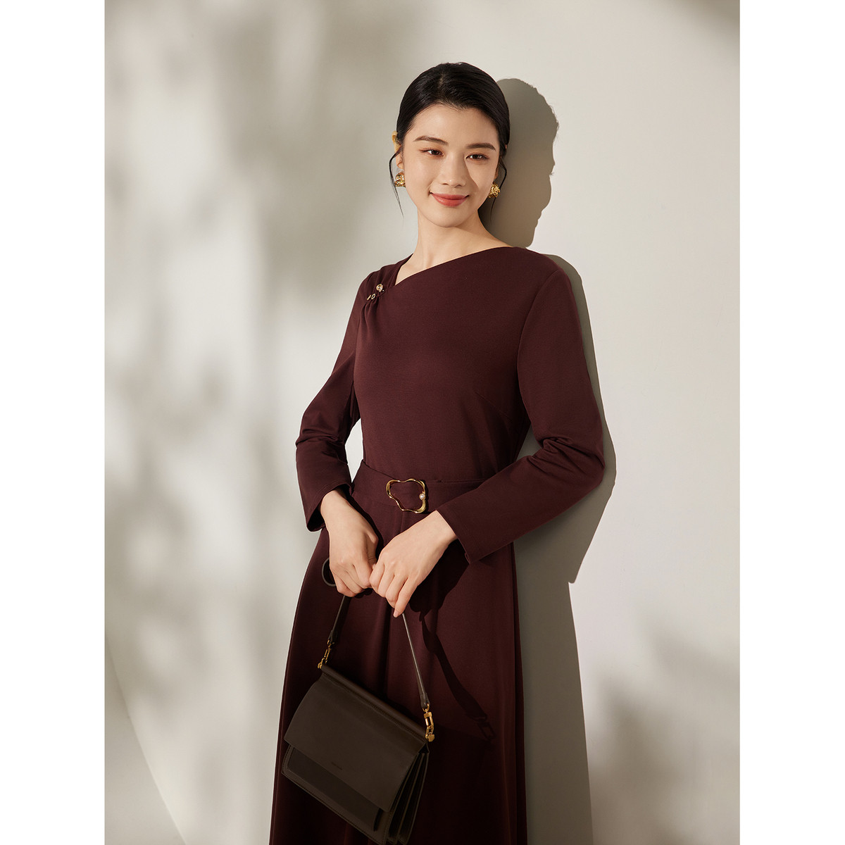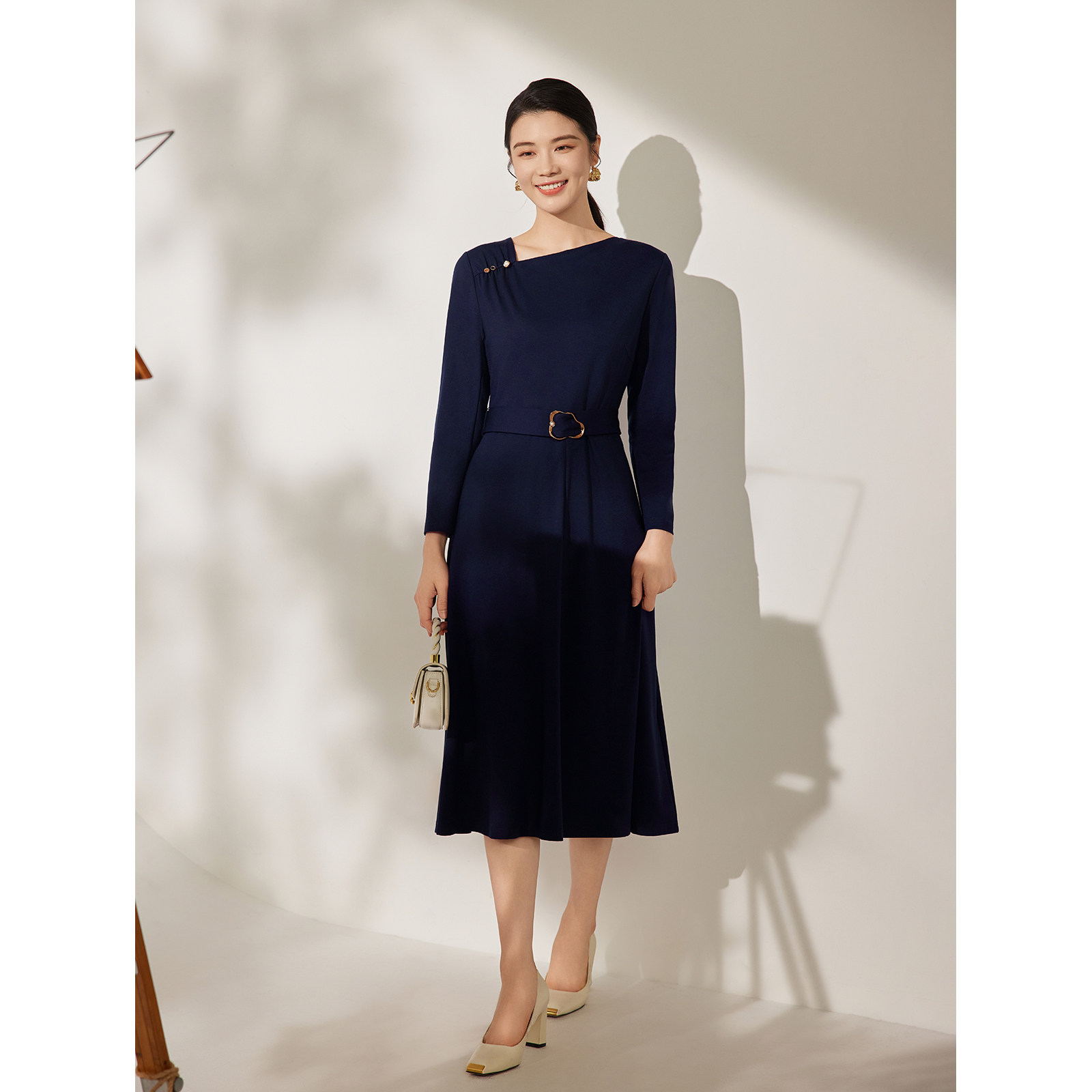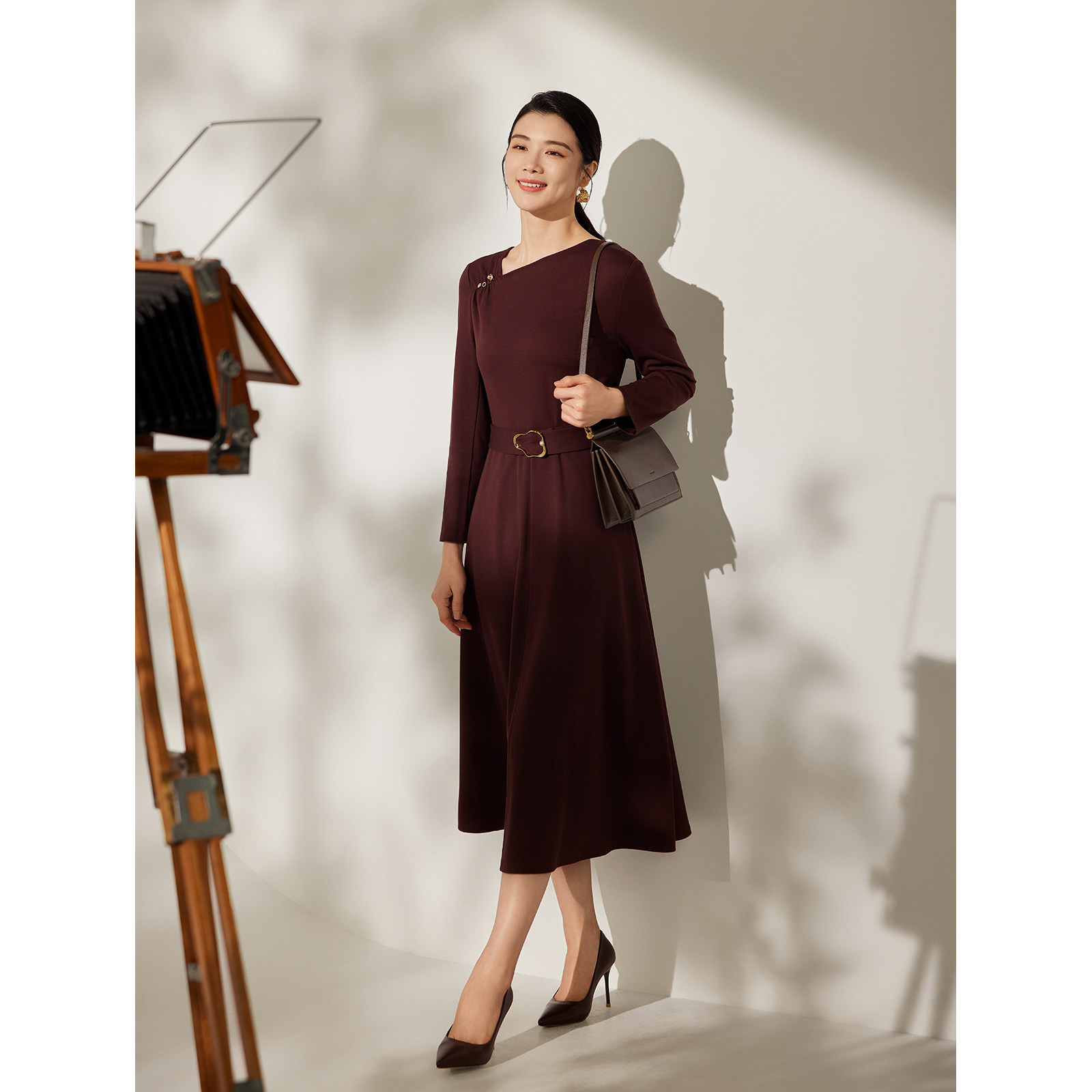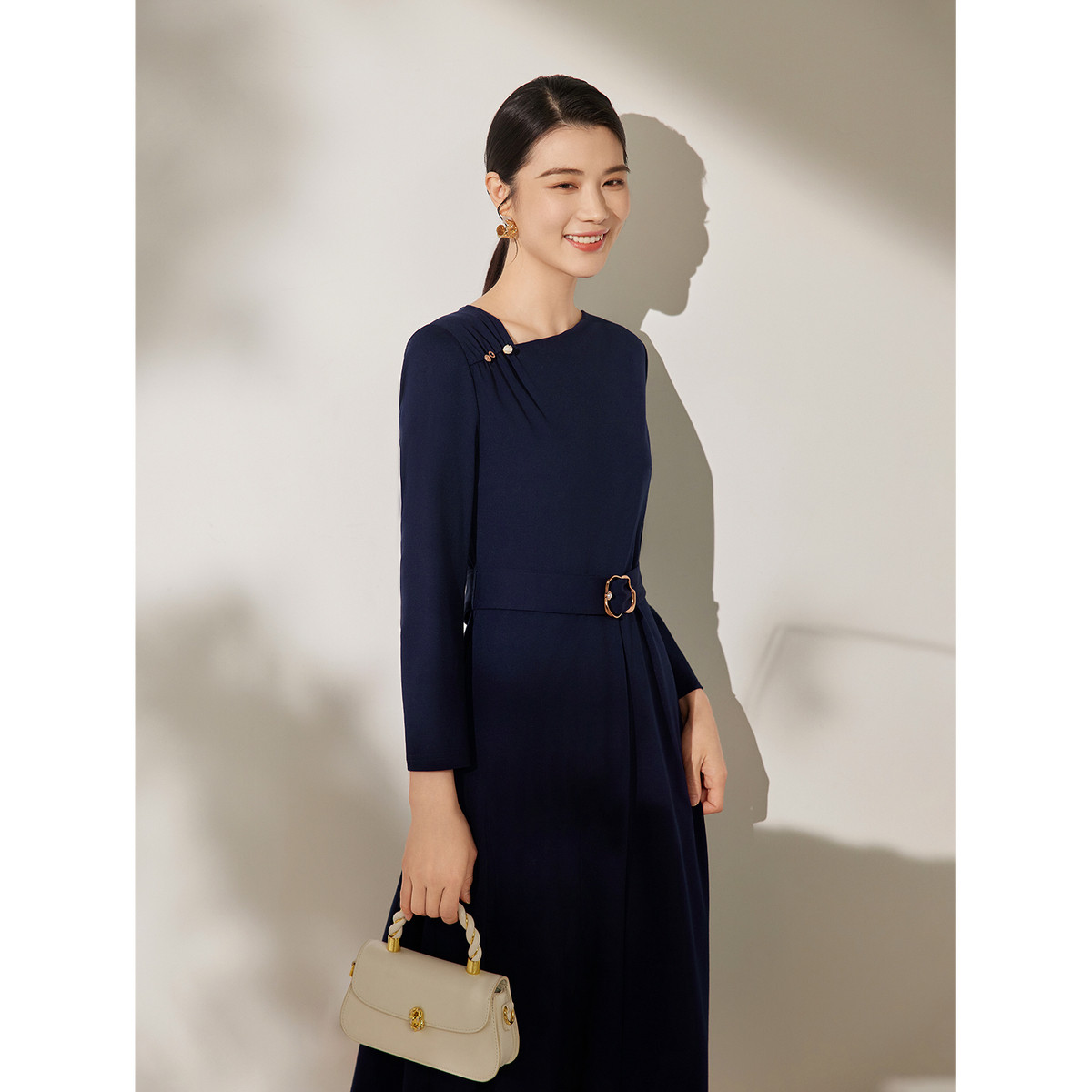 【商场同款】BBLLUUEE/粉蓝衣橱2025冬装经典通勤匠心抽褶连衣裙