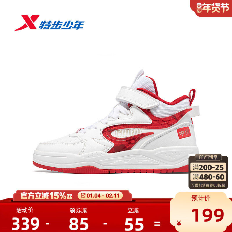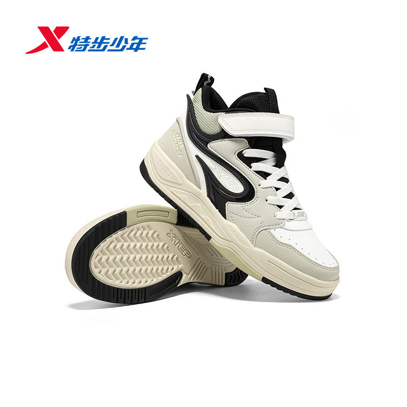 【商场同款】特步童鞋秋冬新款中大童男童高帮时尚板鞋儿童运动鞋