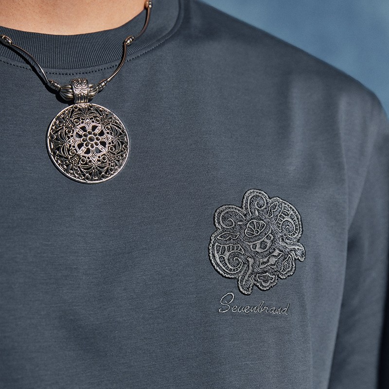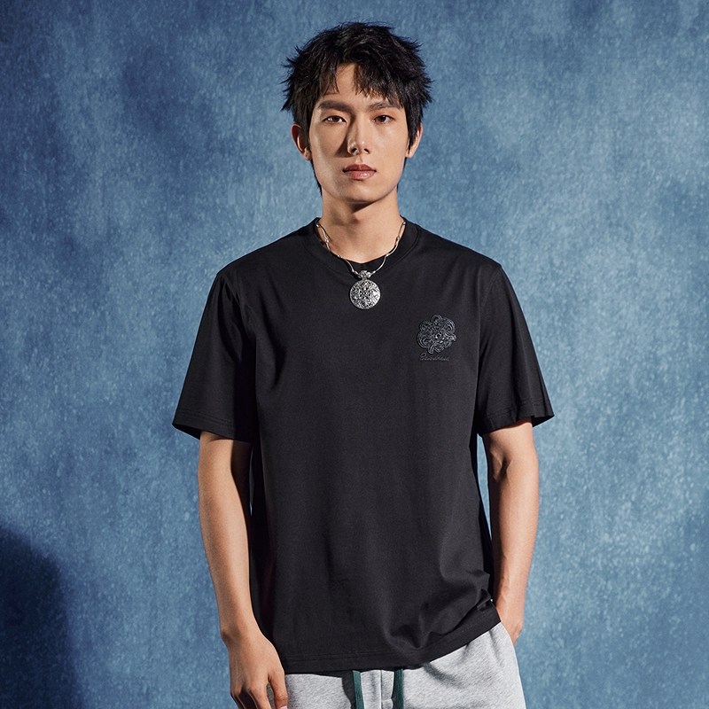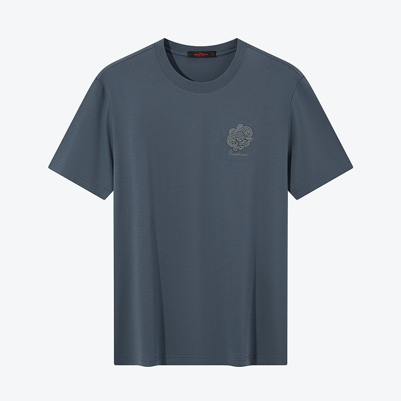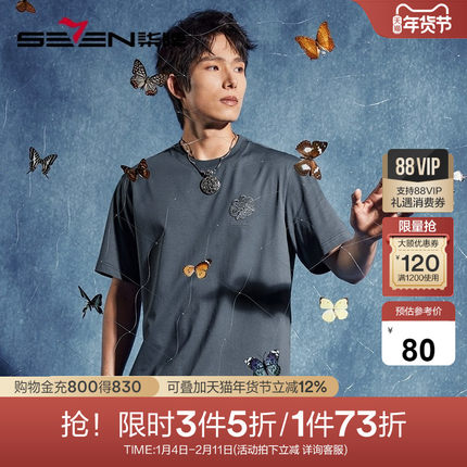 【非遗苗绣蝴蝶妈妈系列】柒牌短袖T恤男夏季新款冰藻泥圆领上衣