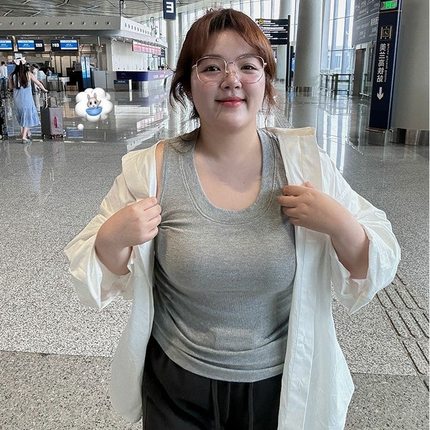 200斤胖MM大码女装纯棉宽边小背心夏季新款显瘦内搭打底无袖上衣