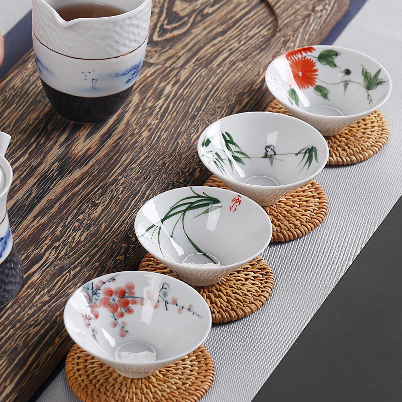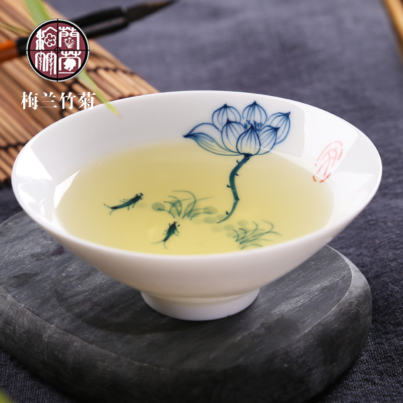 手绘斗笠杯薄胎单个小茶杯陶瓷单只品茗杯青花瓷主人杯功夫茶单杯