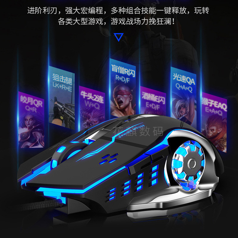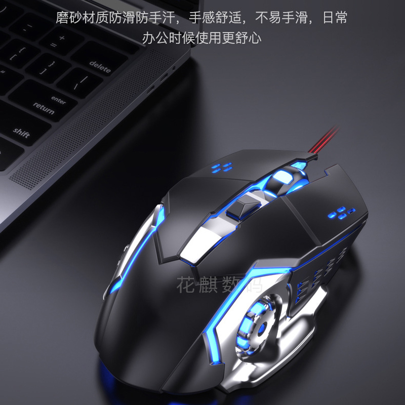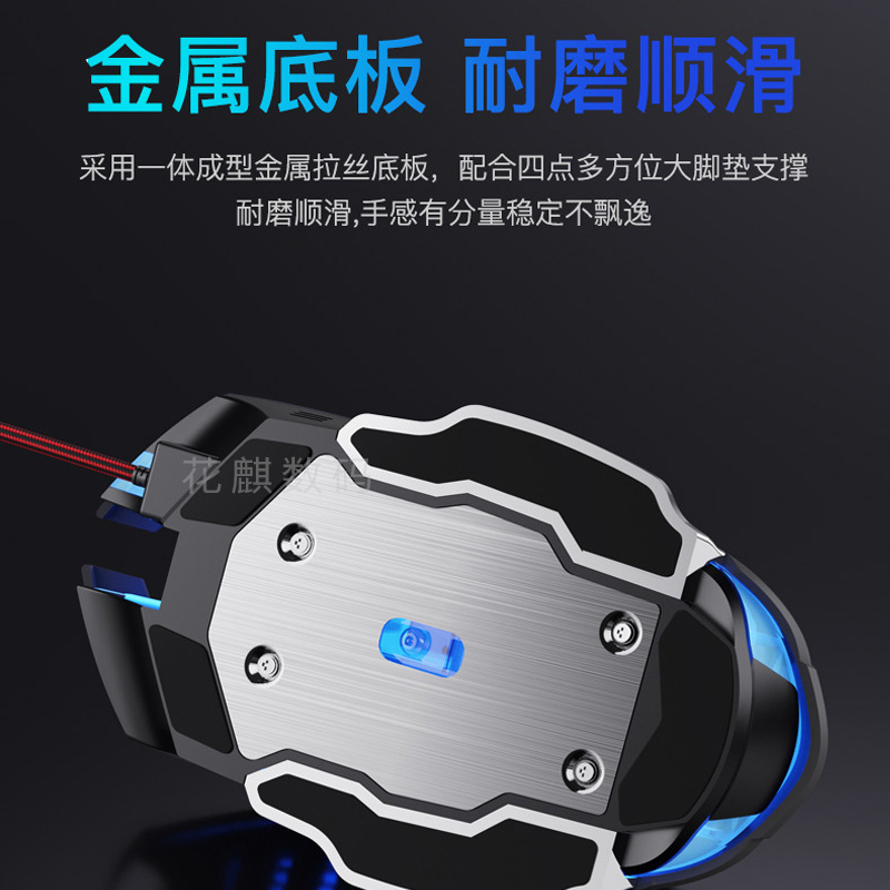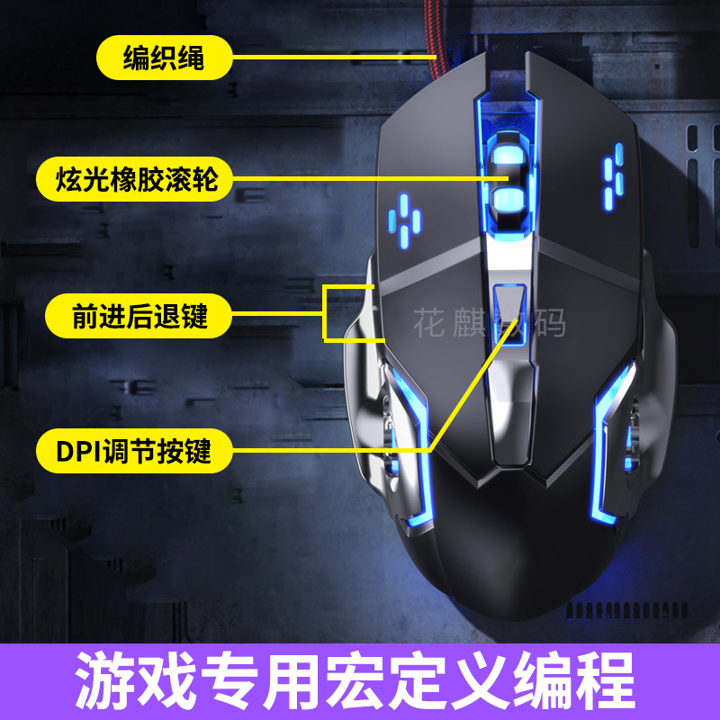 花麒机械游戏电竞专用无线鼠标宏编程有线办公静音金属底板编织线