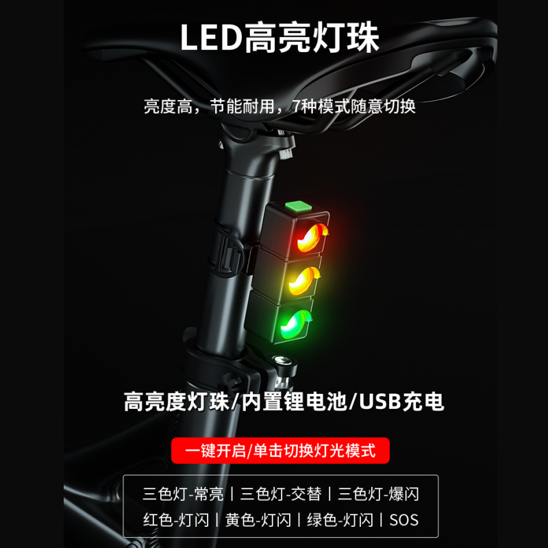 自行车尾灯创意红绿灯山地车夜间骑行闪灯公路车警示灯骑行装备
