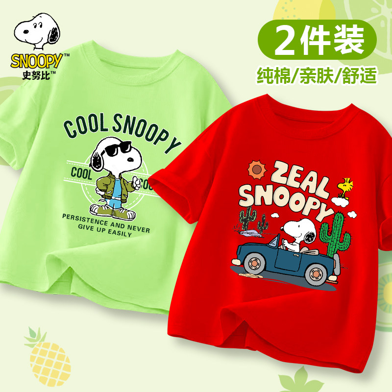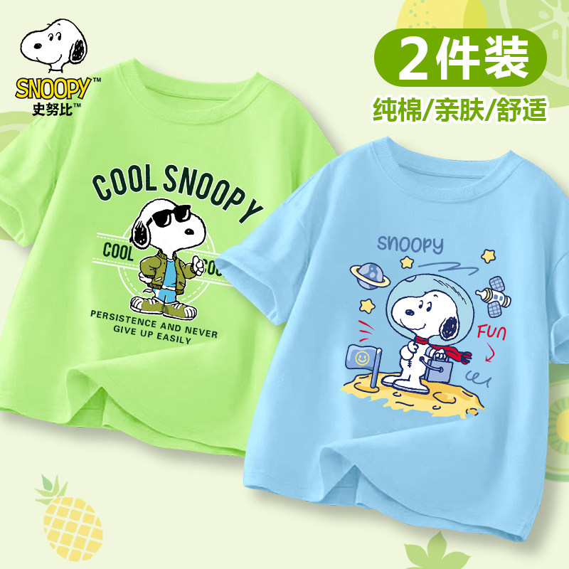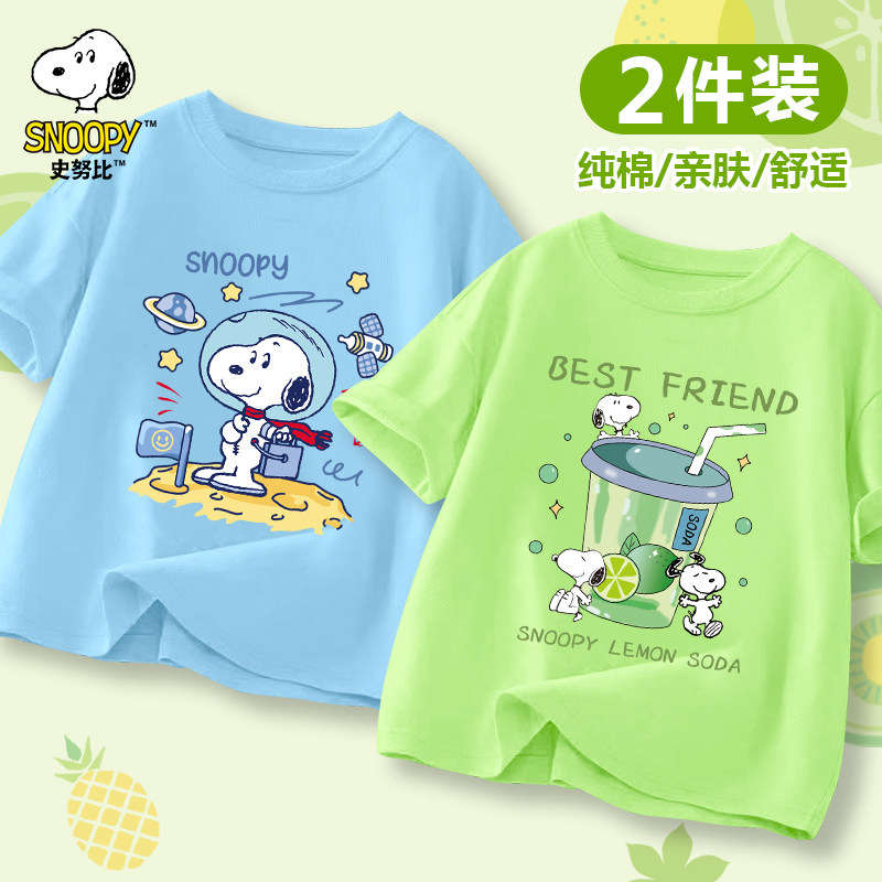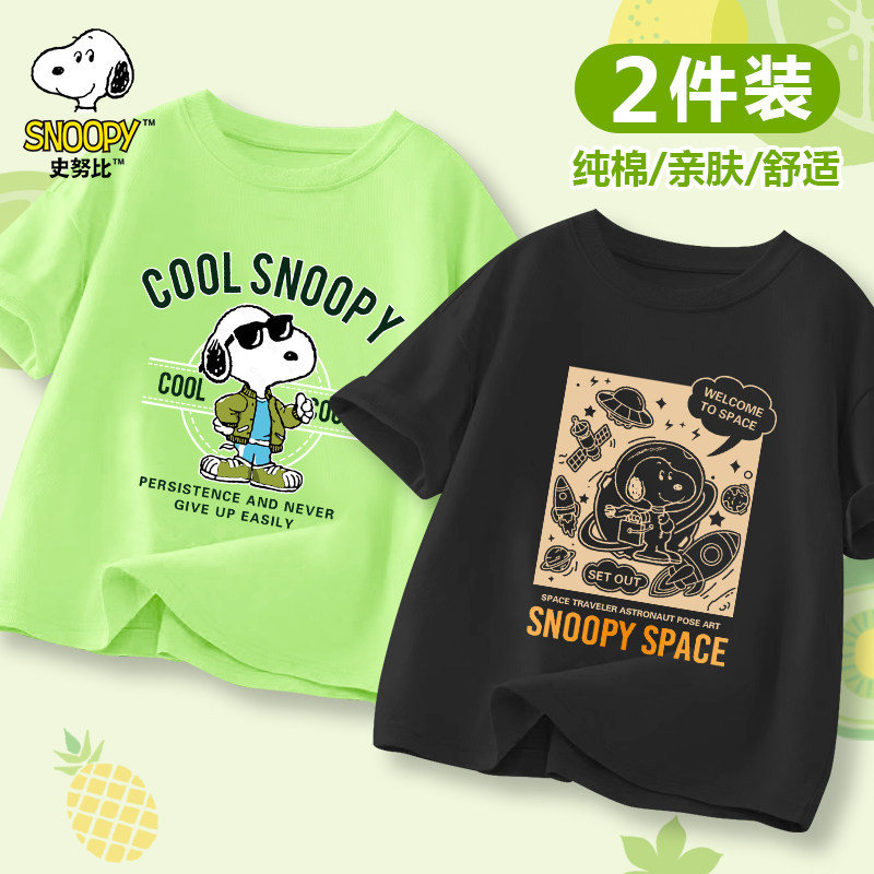 史努比男童短袖T恤2025新款宽松夏季薄款半袖上衣夏装儿童打底衫