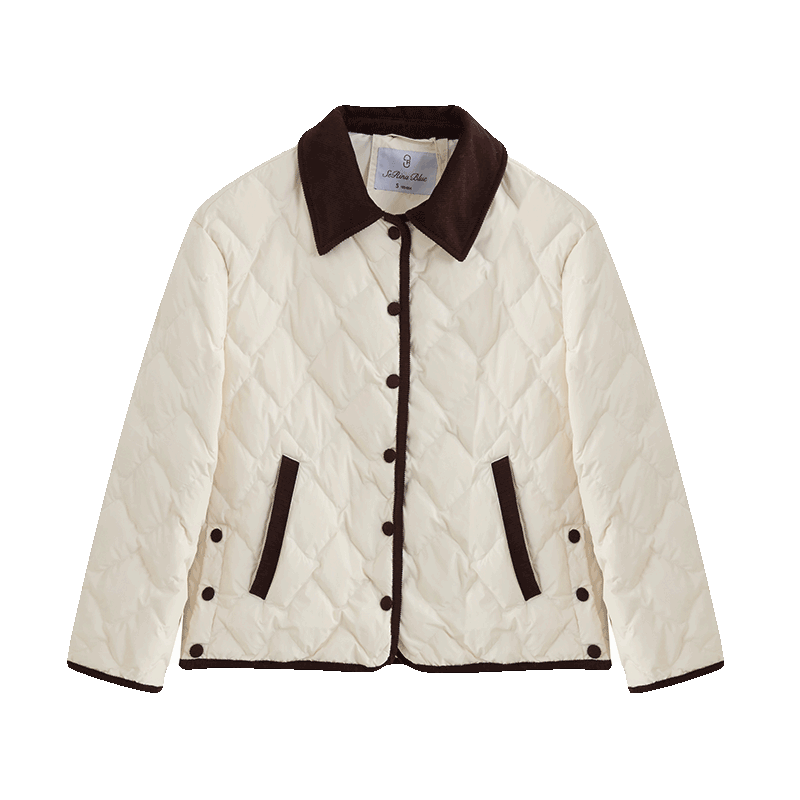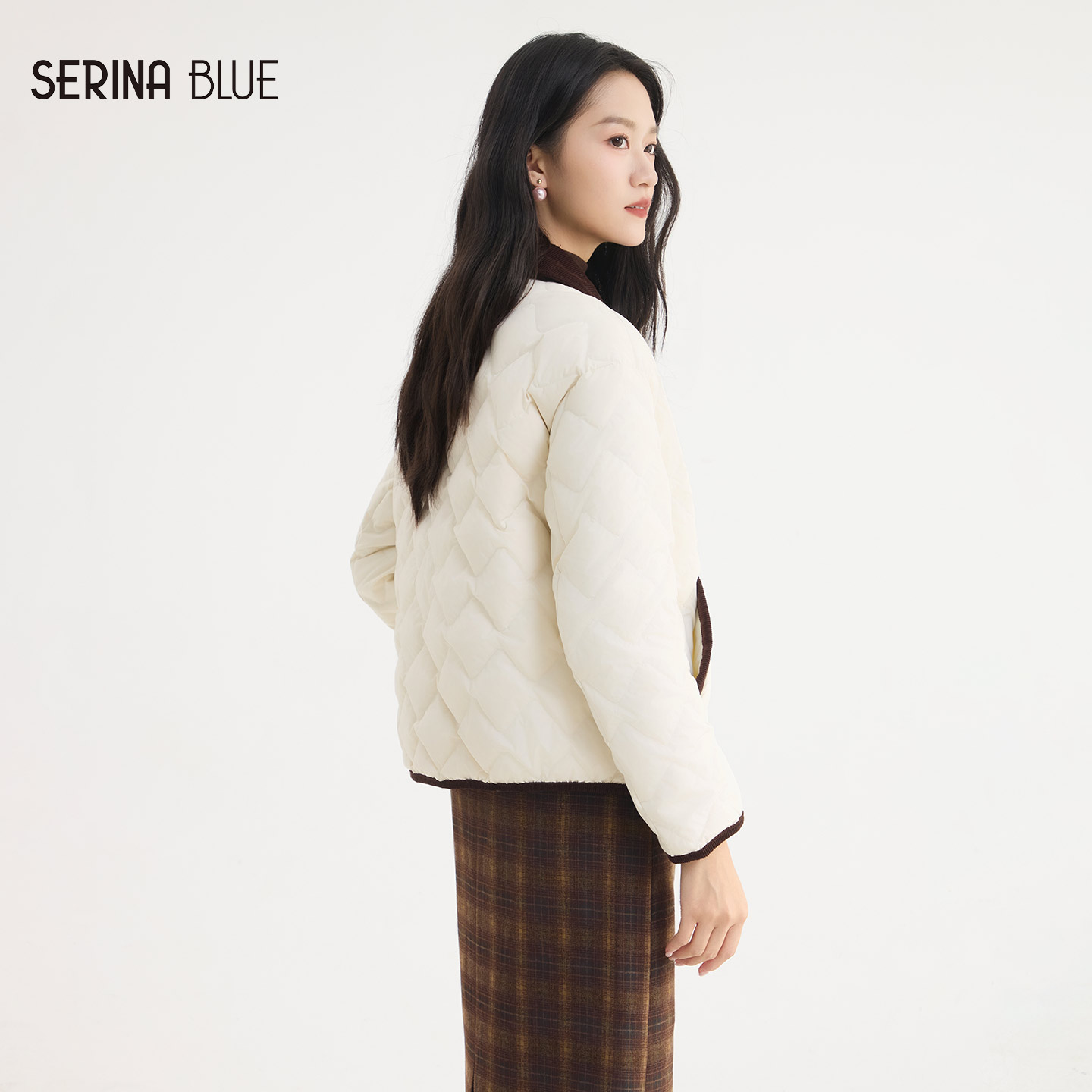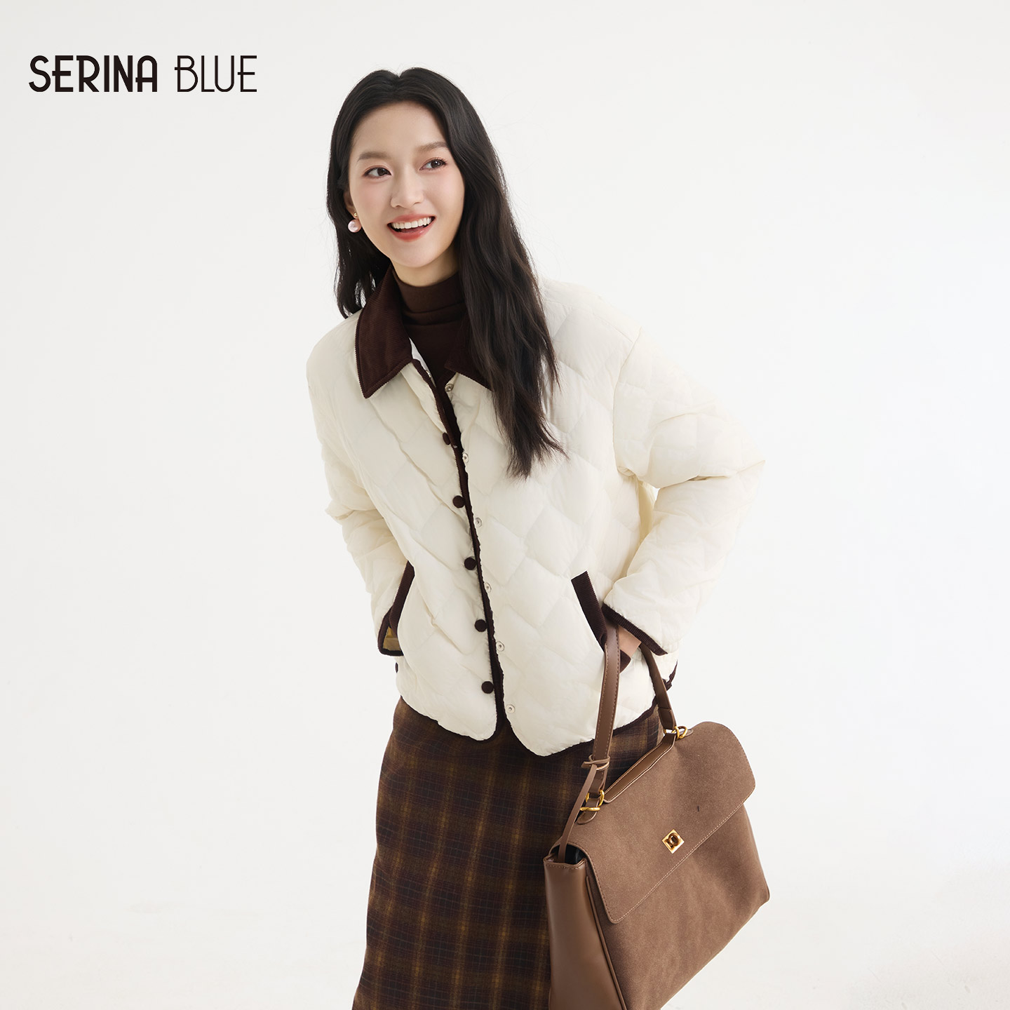 SeRinaBlue商场同款2025年冬季新款撞色翻领轻薄羽绒服女短款外套
