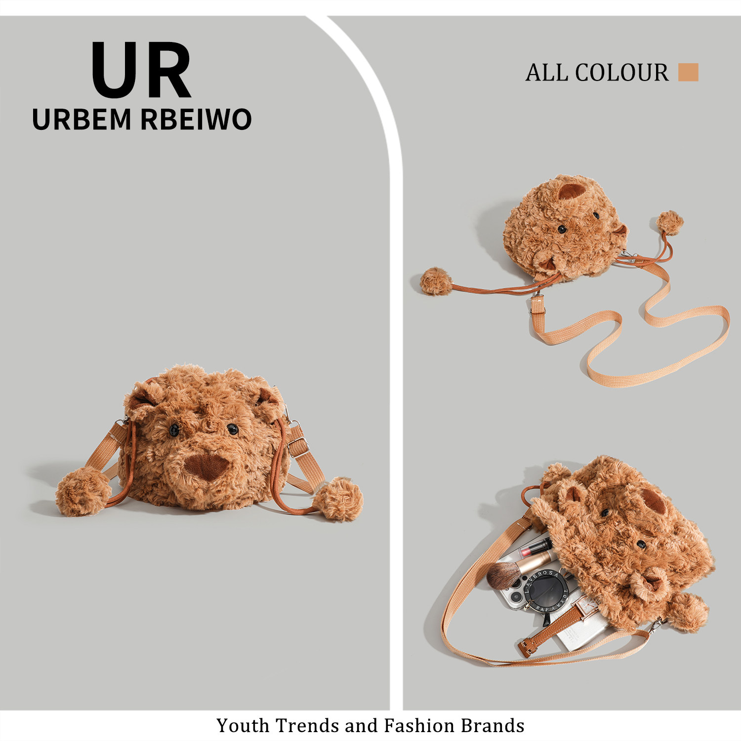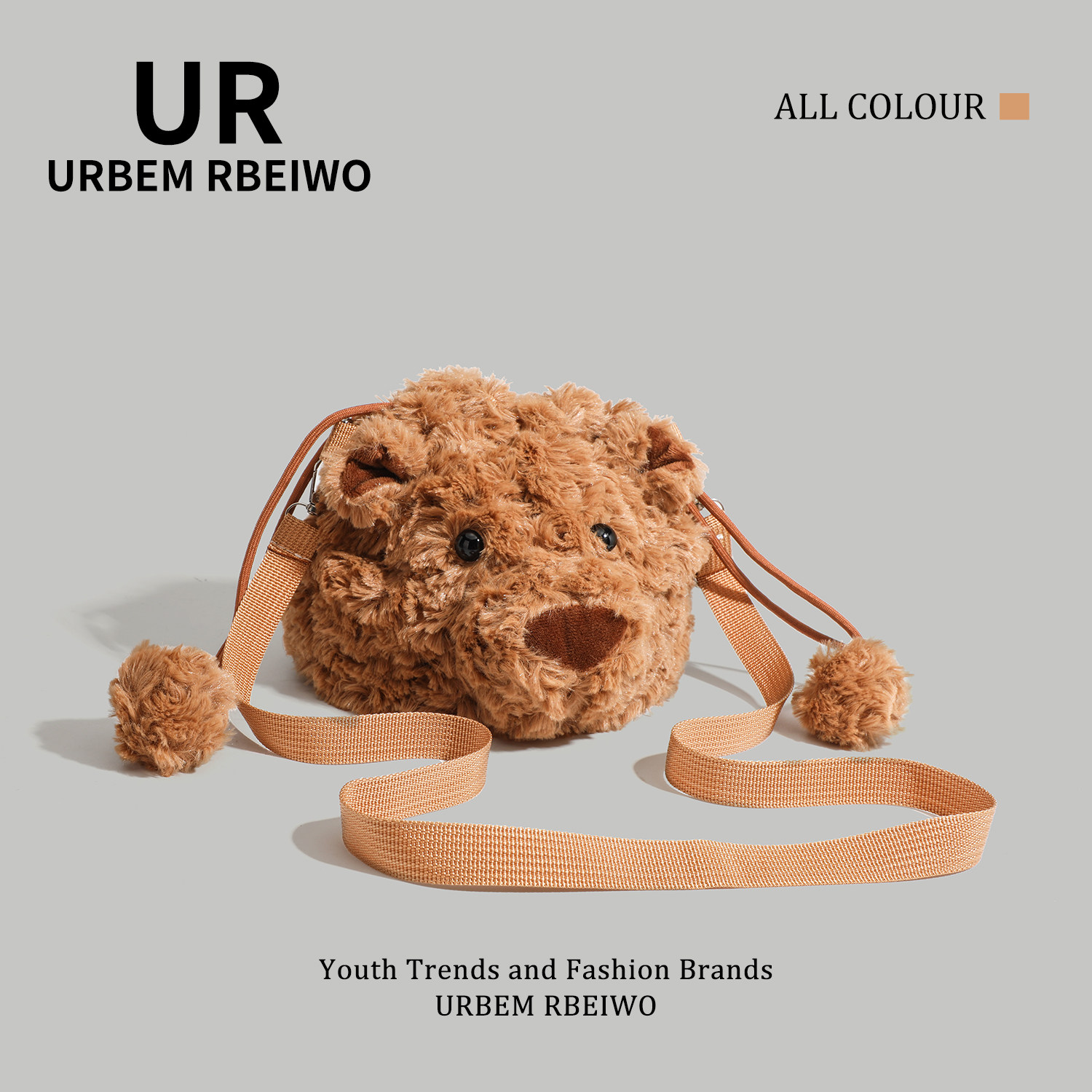 UR包包女赵露思同款可爱巴塞罗那小熊毛毛包单肩斜挎抽绳水桶包
