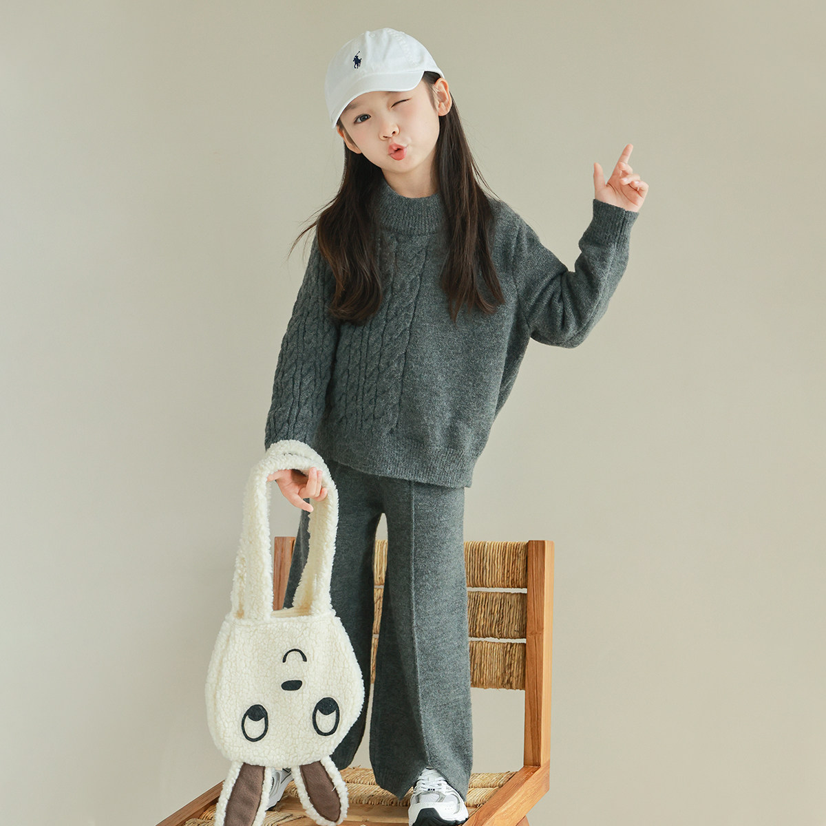 大耳象女童羊毛麻花套头毛衣毛线裤冬季新款儿童套装