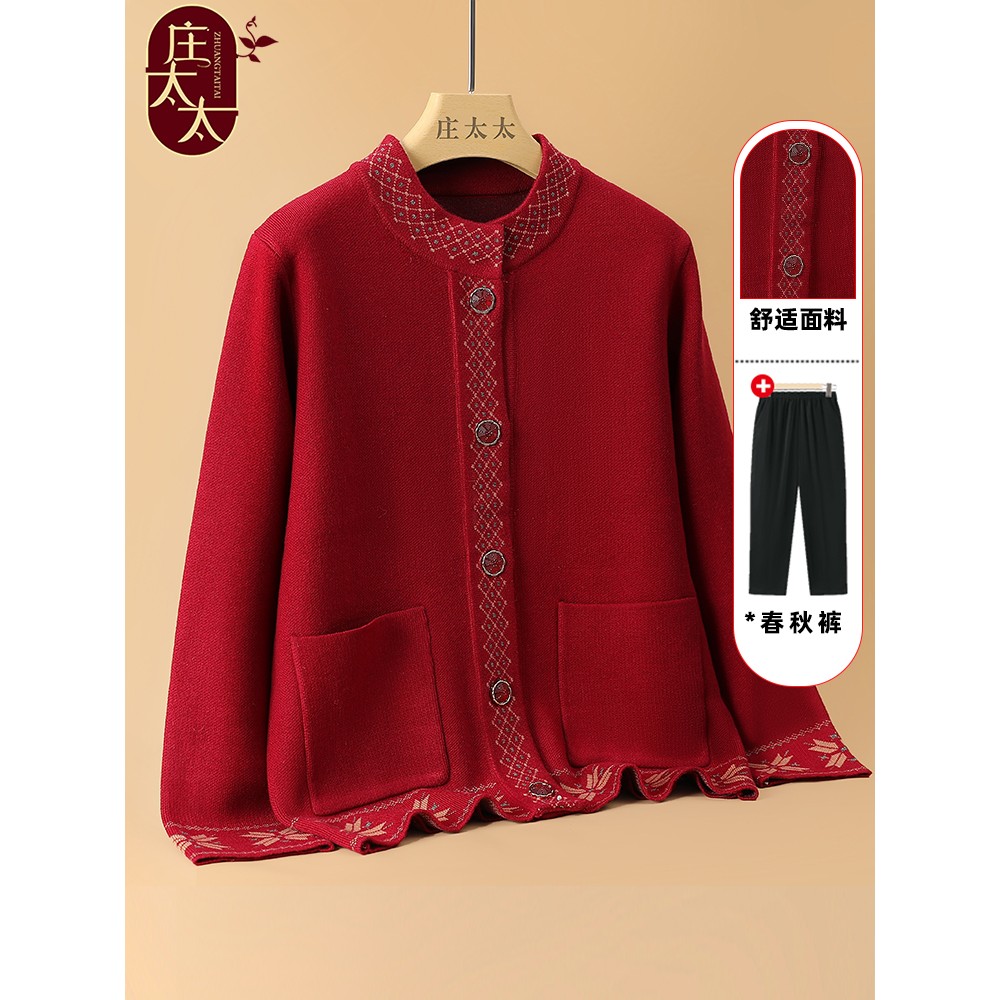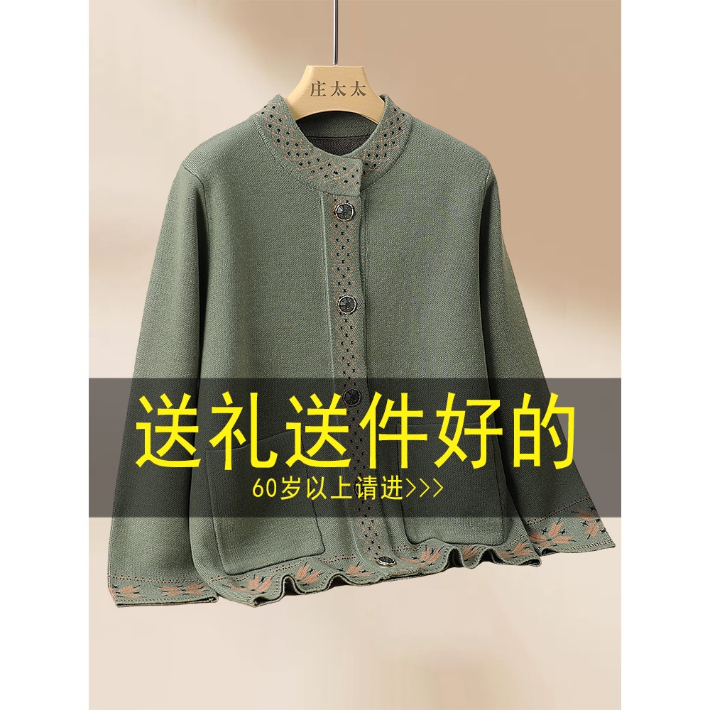 奶奶装秋新款针织开衫老年人外套女款秋冬加绒加厚毛衣老太太衣服