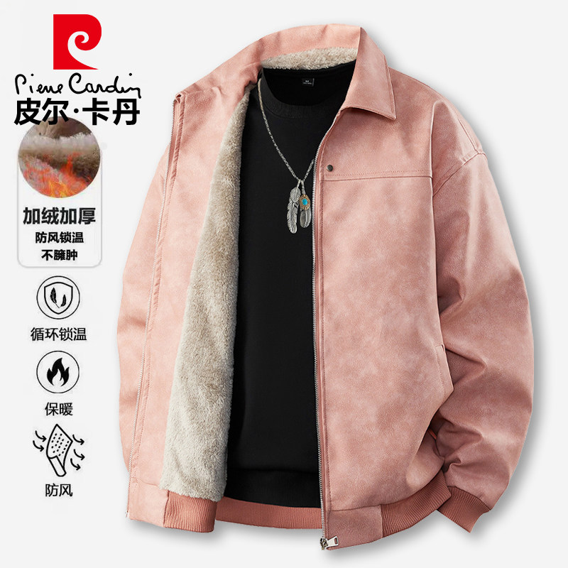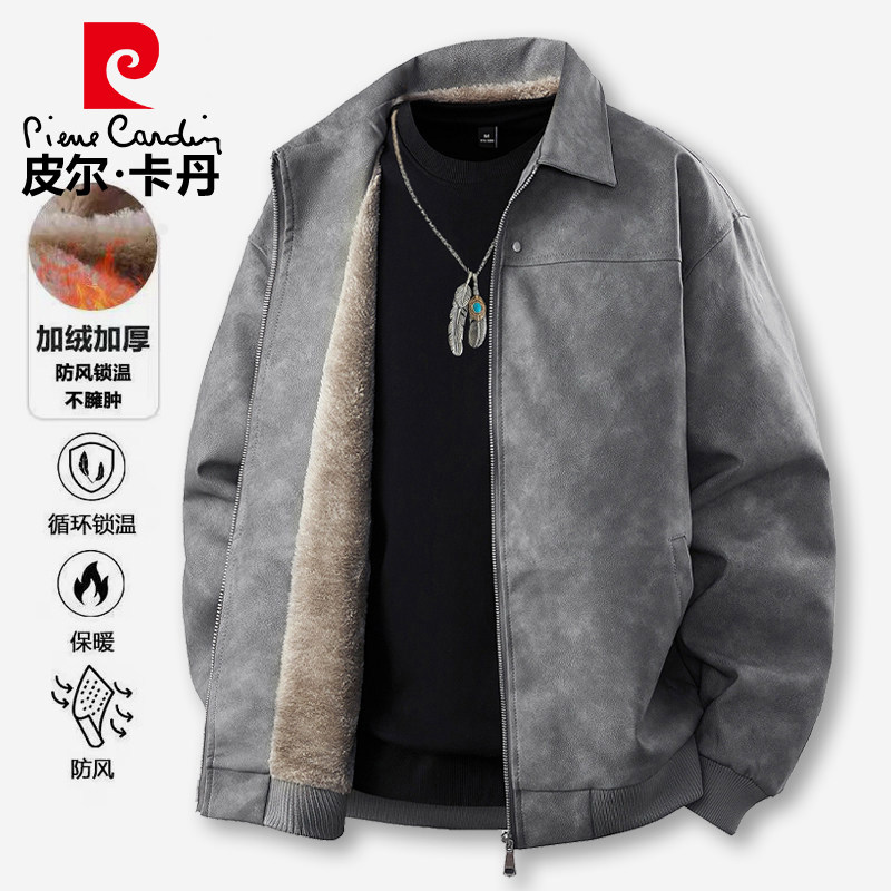 皮尔卡丹男秋冬加绒保暖机车夹克