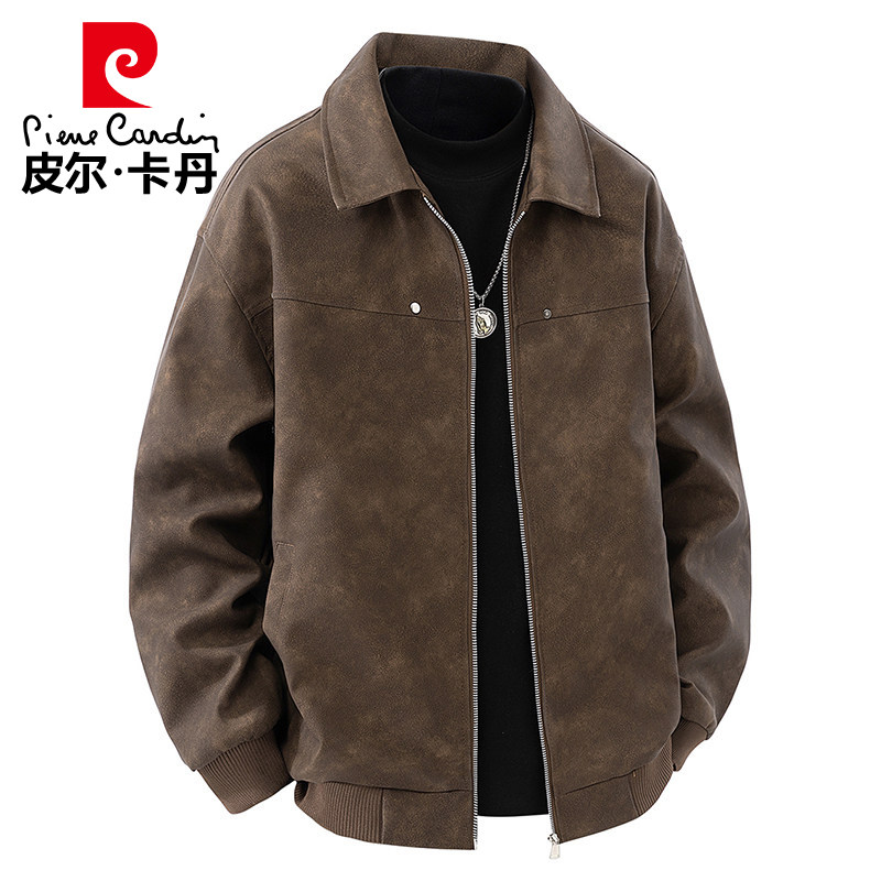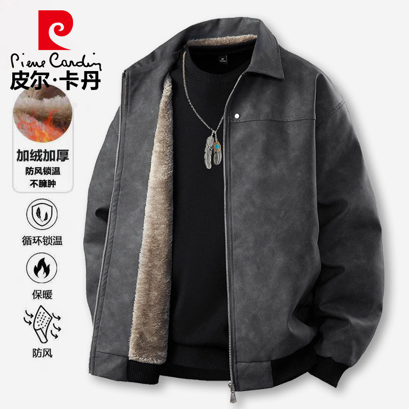 皮尔卡丹皮衣外套男款秋冬2025新款加绒加厚保暖机车大码皮夹克潮