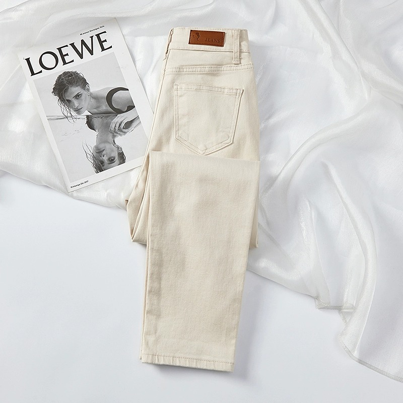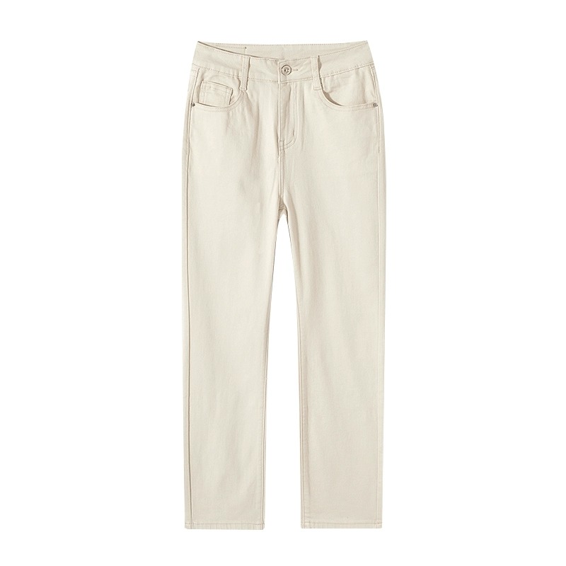 米白色直筒牛仔裤女2024秋季新款高腰显瘦弹力小个子加绒哈伦裤潮