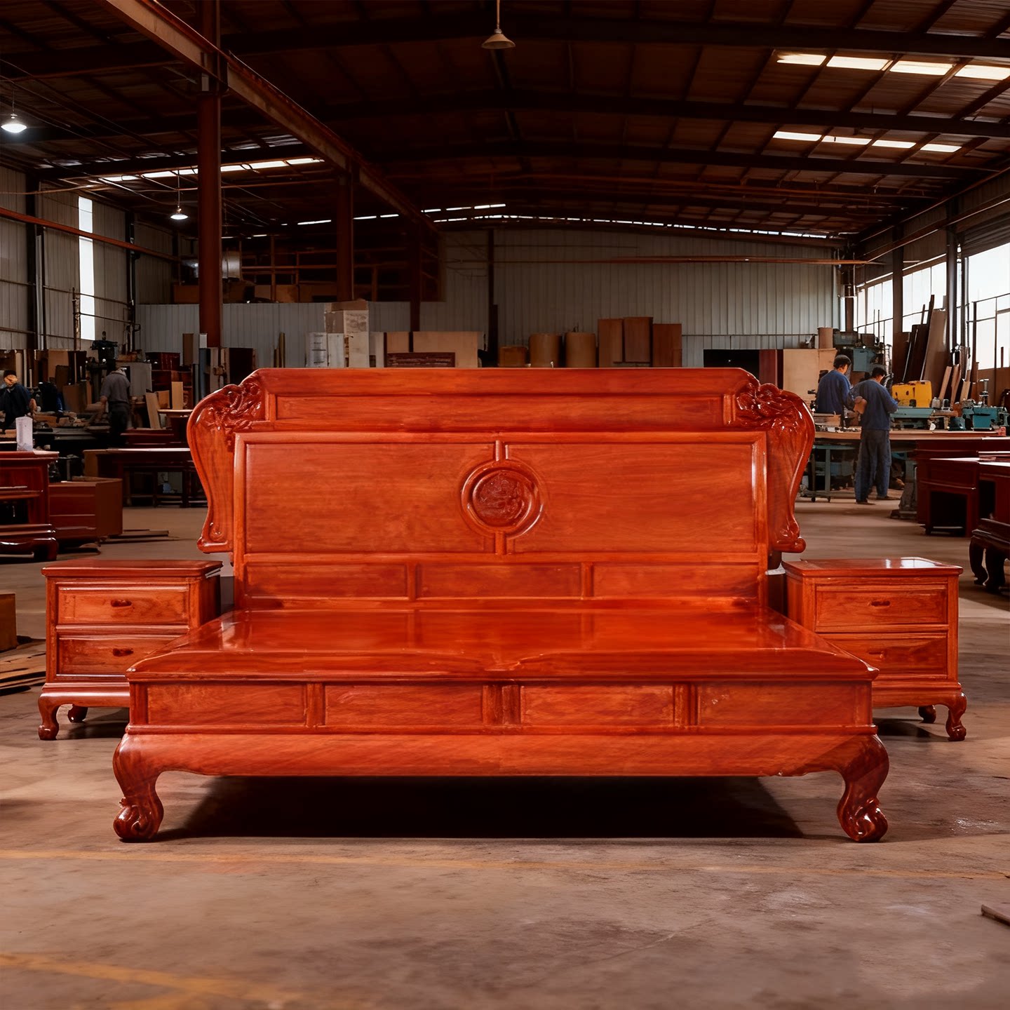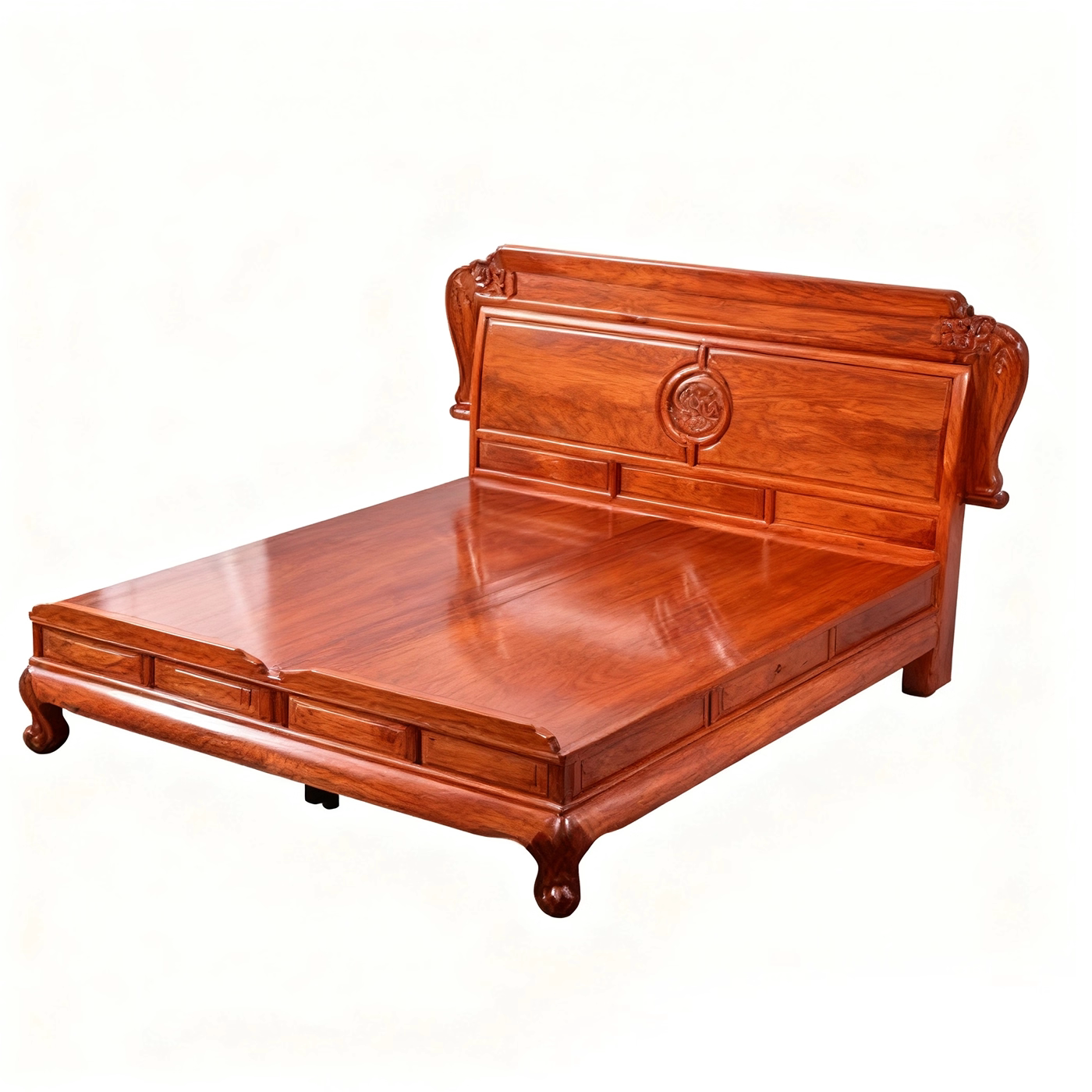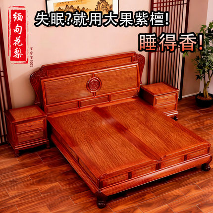 明清古典红木家具缅甸花梨1.8米素面双人实木婚床独榫卯大果紫檀