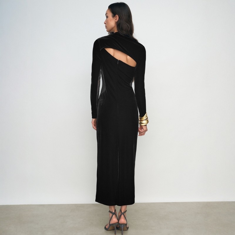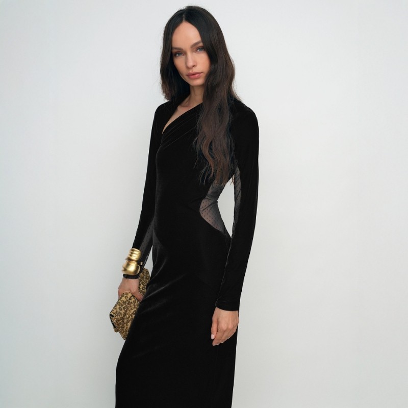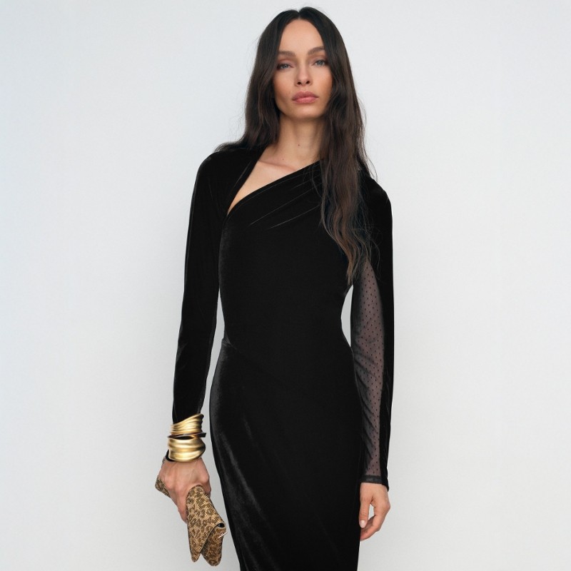 REISS黑色丝绒礼服裙连衣裙中长款波点网纱拼接露背优雅气质名媛