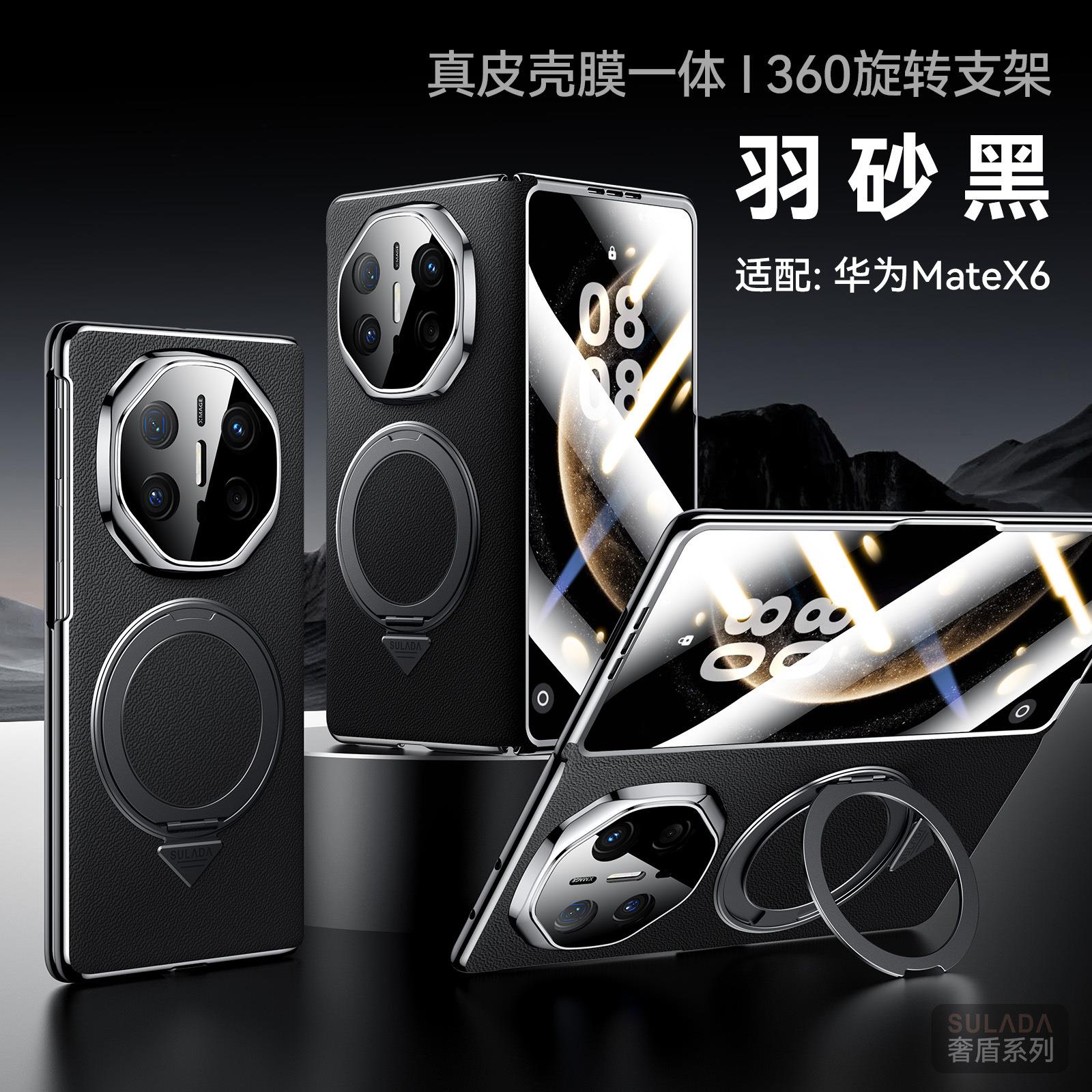 【壳膜一体】适用华为MateX6真皮旋转支架磁吸手机壳matex5高档商务男士手机套matex6典藏版matex5新款外壳