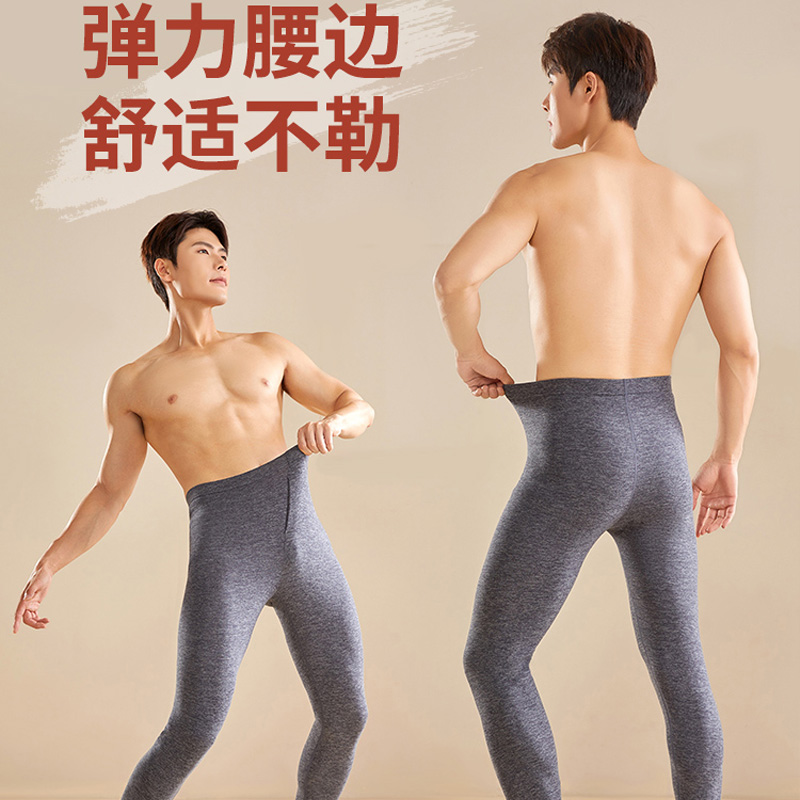浪莎男士秋裤薄款内穿保暖裤高腰紧身打底棉毛裤秋冬羊毛蚕丝线裤
