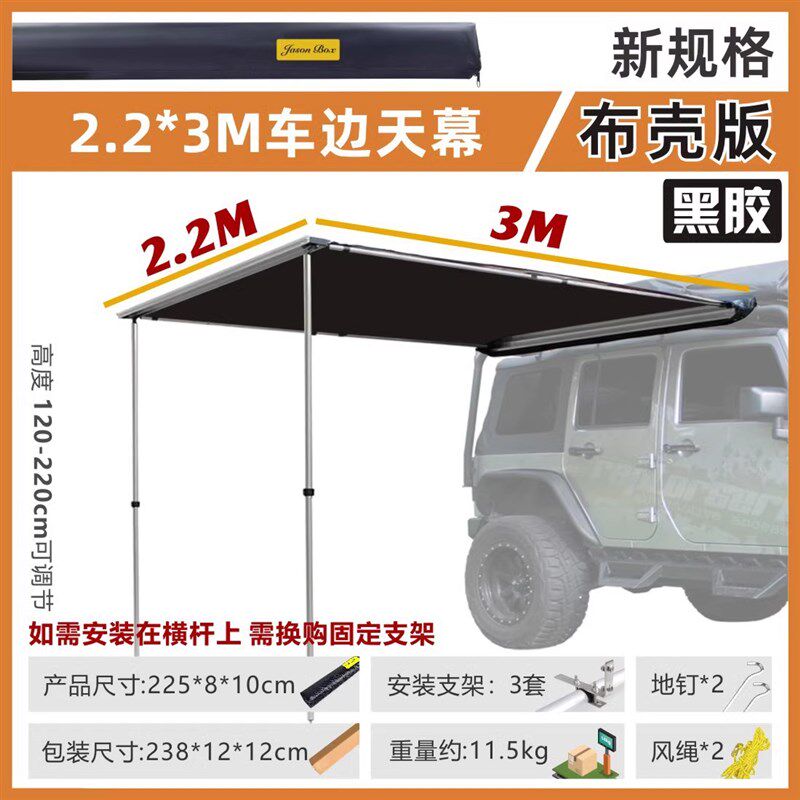 简森户外黑胶车边帐天幕侧帐篷越野遮阳棚露营车载防雨晒ZTK300