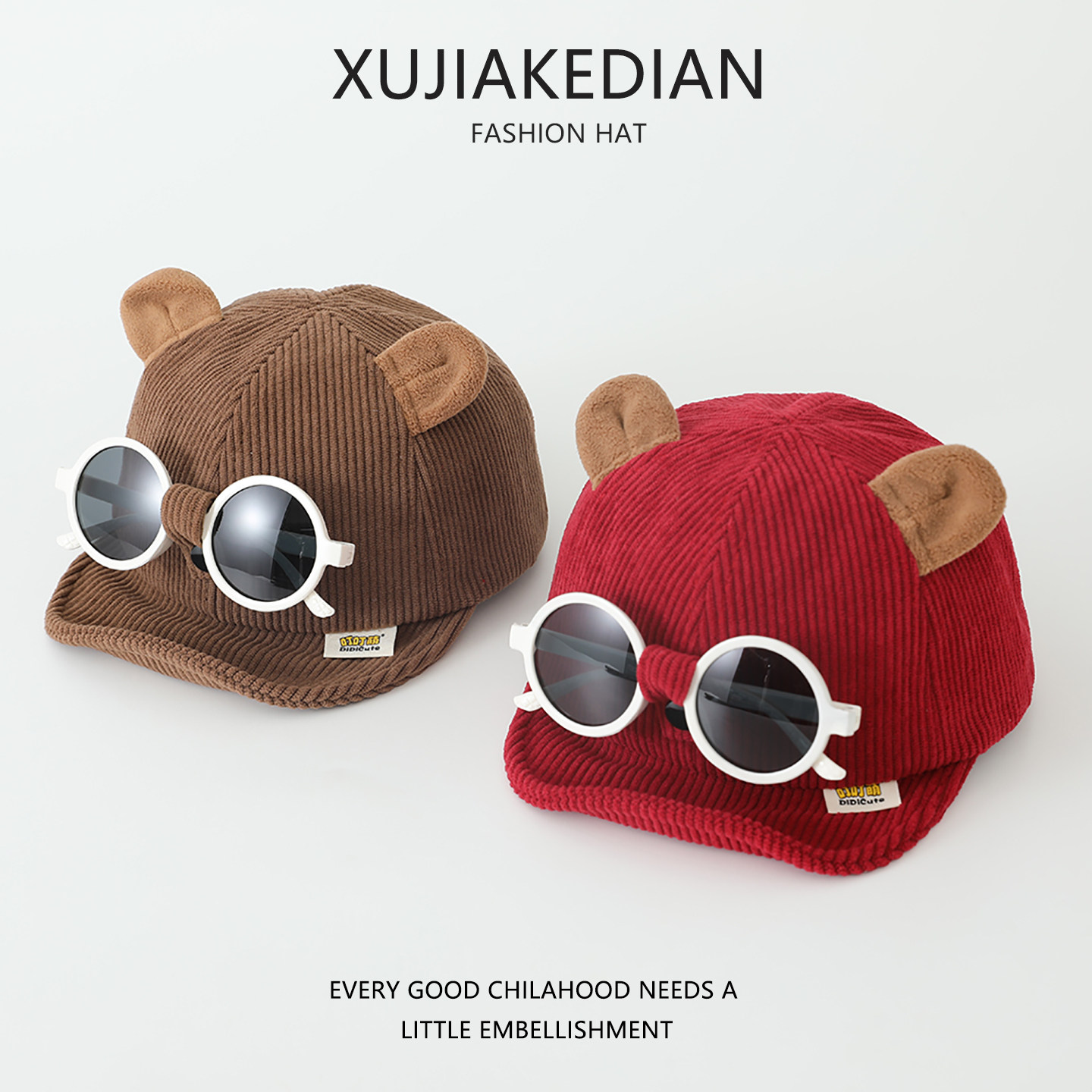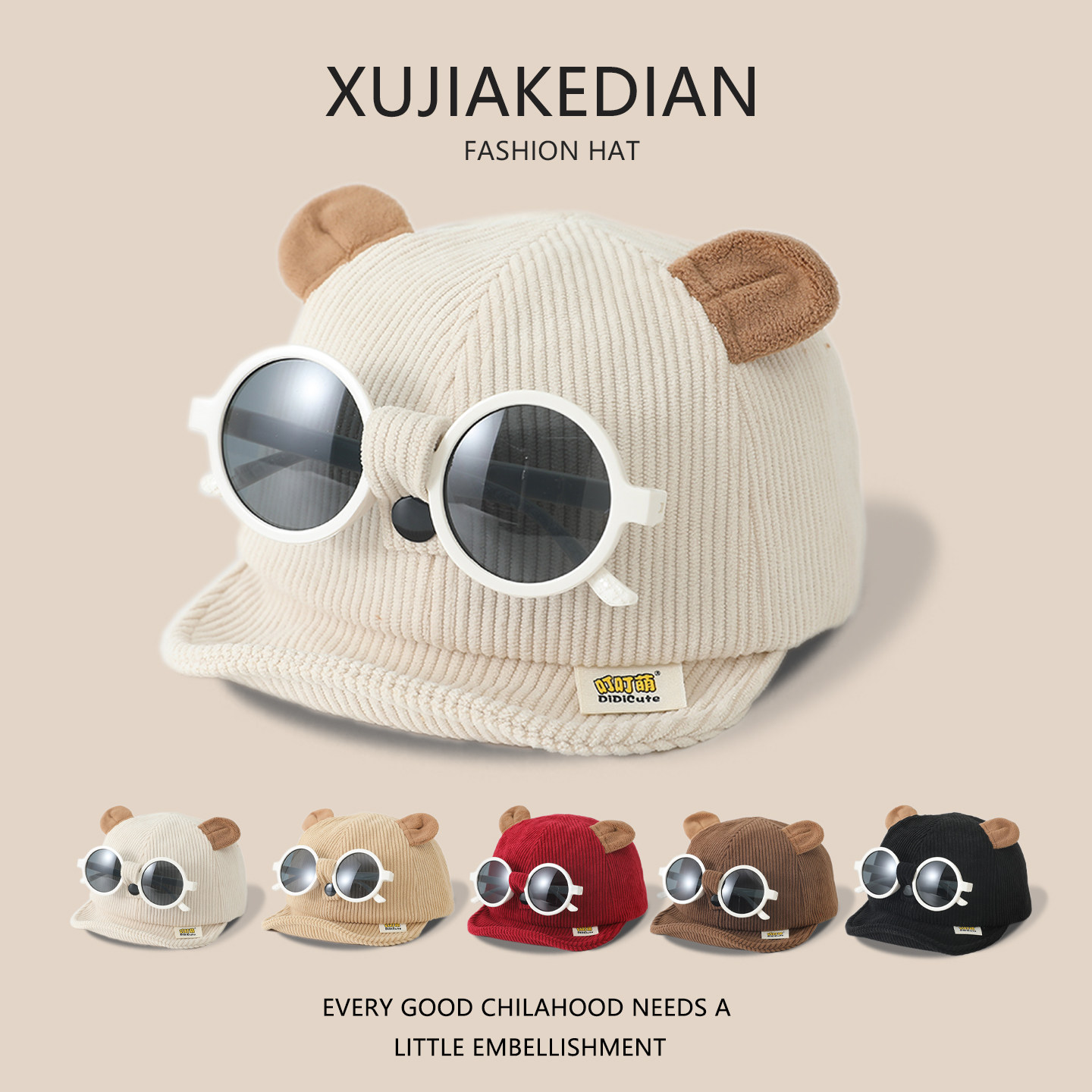 婴儿帽子秋冬季韩版墨镜鸭舌帽男宝宝小月龄女童遮阳防风棒球帽春