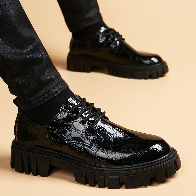 男士秋冬皮鞋男2025季新款英伦潮流休闲男鞋亮面厚底内增高1008h