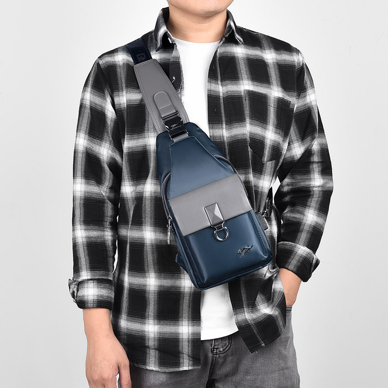 袋鼠牛津布单肩休闲风胸前小背包