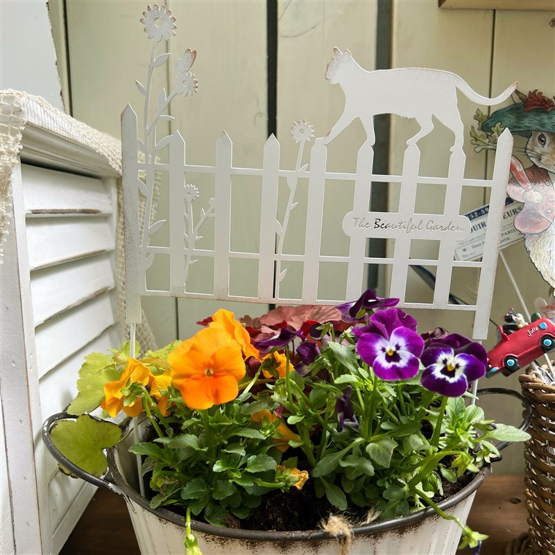 园艺杂货铁艺花插猫咪花朵爬栅栏围栏装饰插牌插件装饰品爬藤架