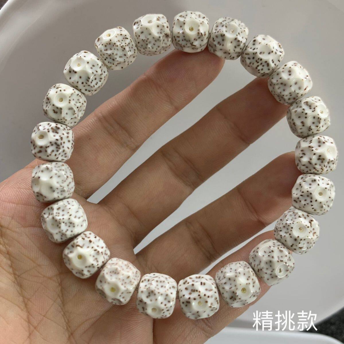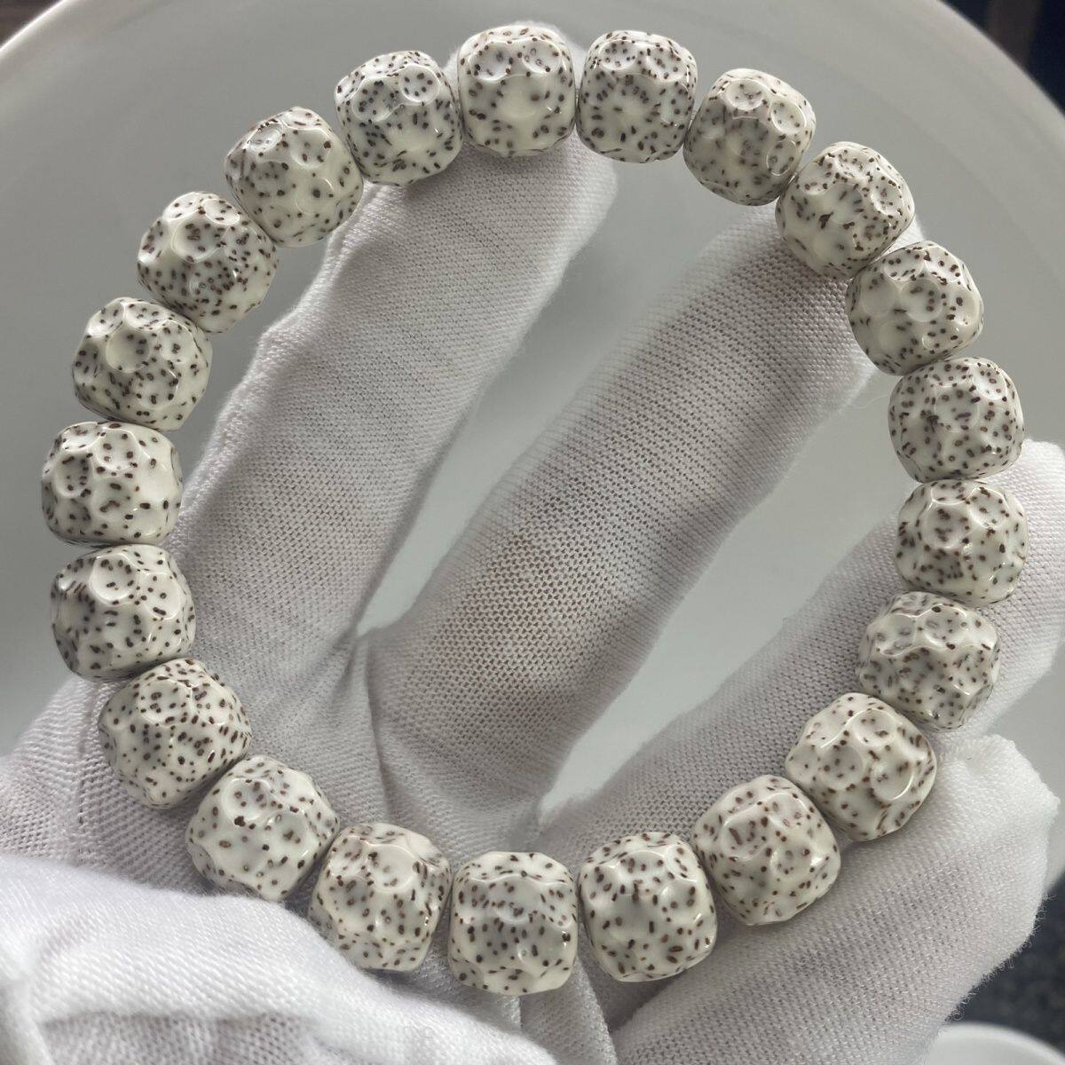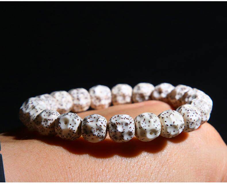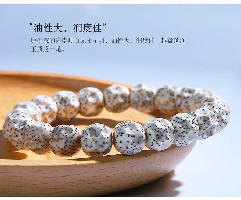 海南无相星月菩提手串单圈莲花石玉料顺白文玩佛珠手链高密高油