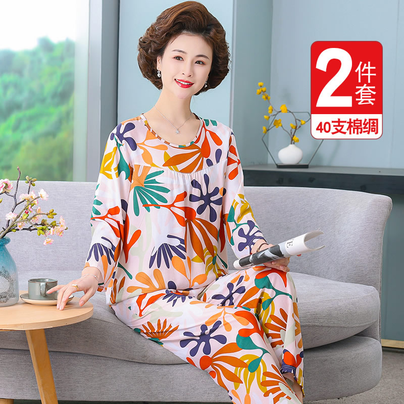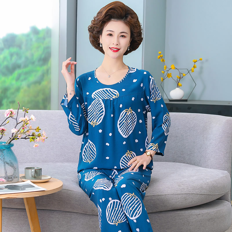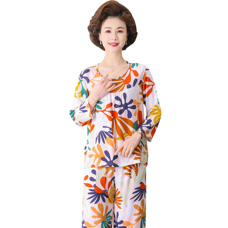 中老年妈妈夏装棉绸睡衣女款2025新款夏款家居服可外穿凉感高级感