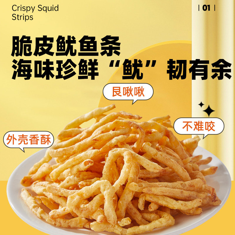 卜奇脆油炸鱿鱼丝香脆芥末鱿鱼即食零食休闲食品解馋小吃香脆追剧