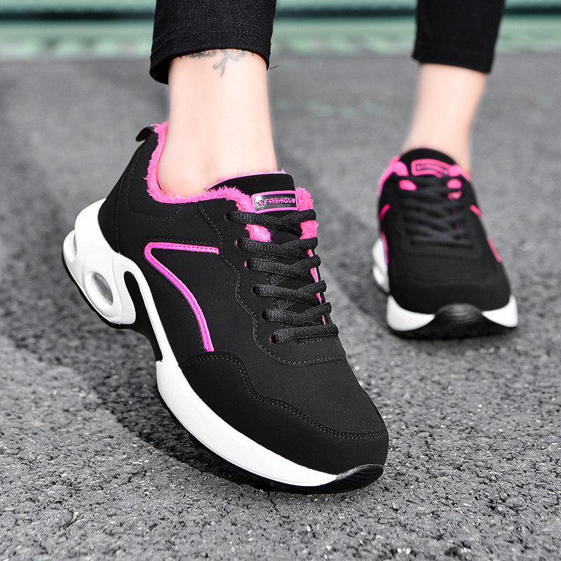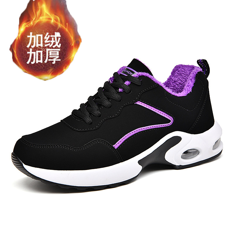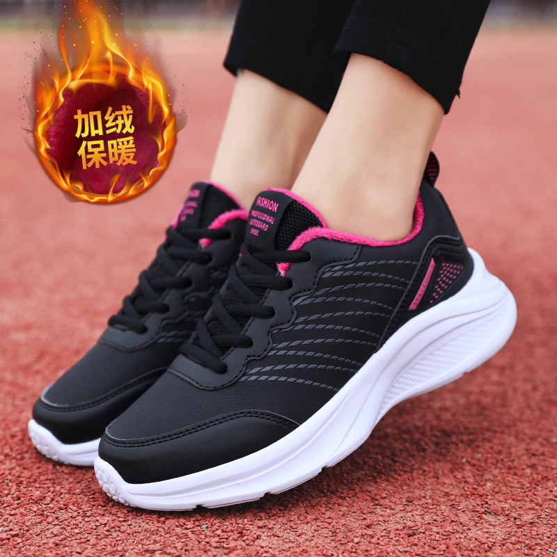 冬季女鞋加绒加厚保暖棉鞋妈妈运动鞋皮面防滑轻便软底大码旅游鞋