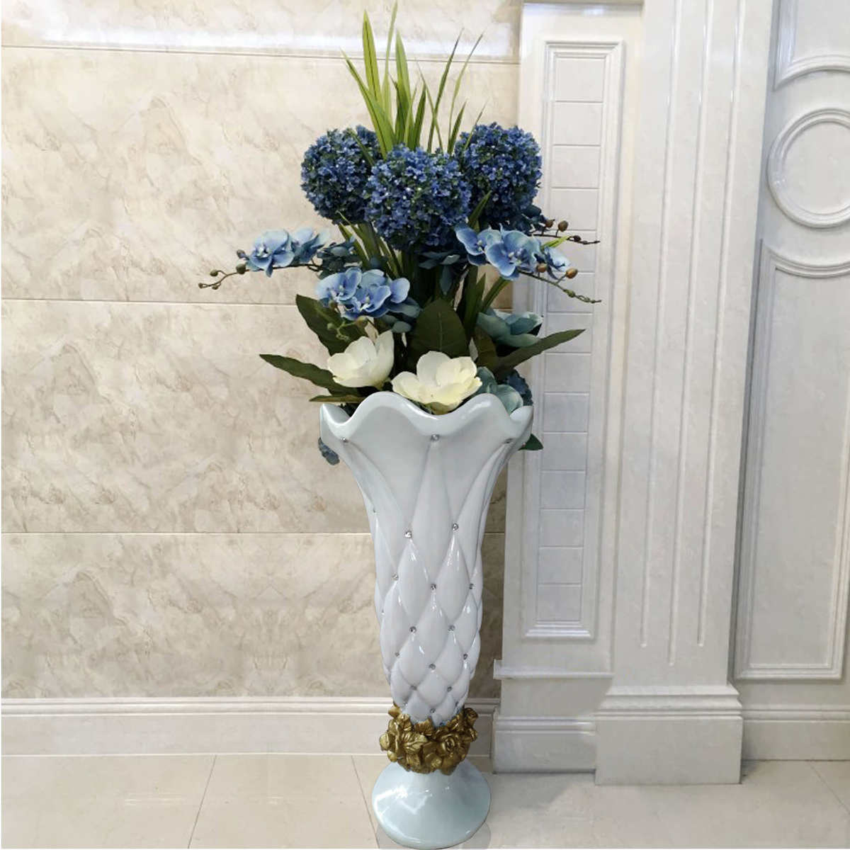 批发新款大号客厅欧式落地树脂玻璃钢陶瓷玫瑰大口花插工艺大花瓶