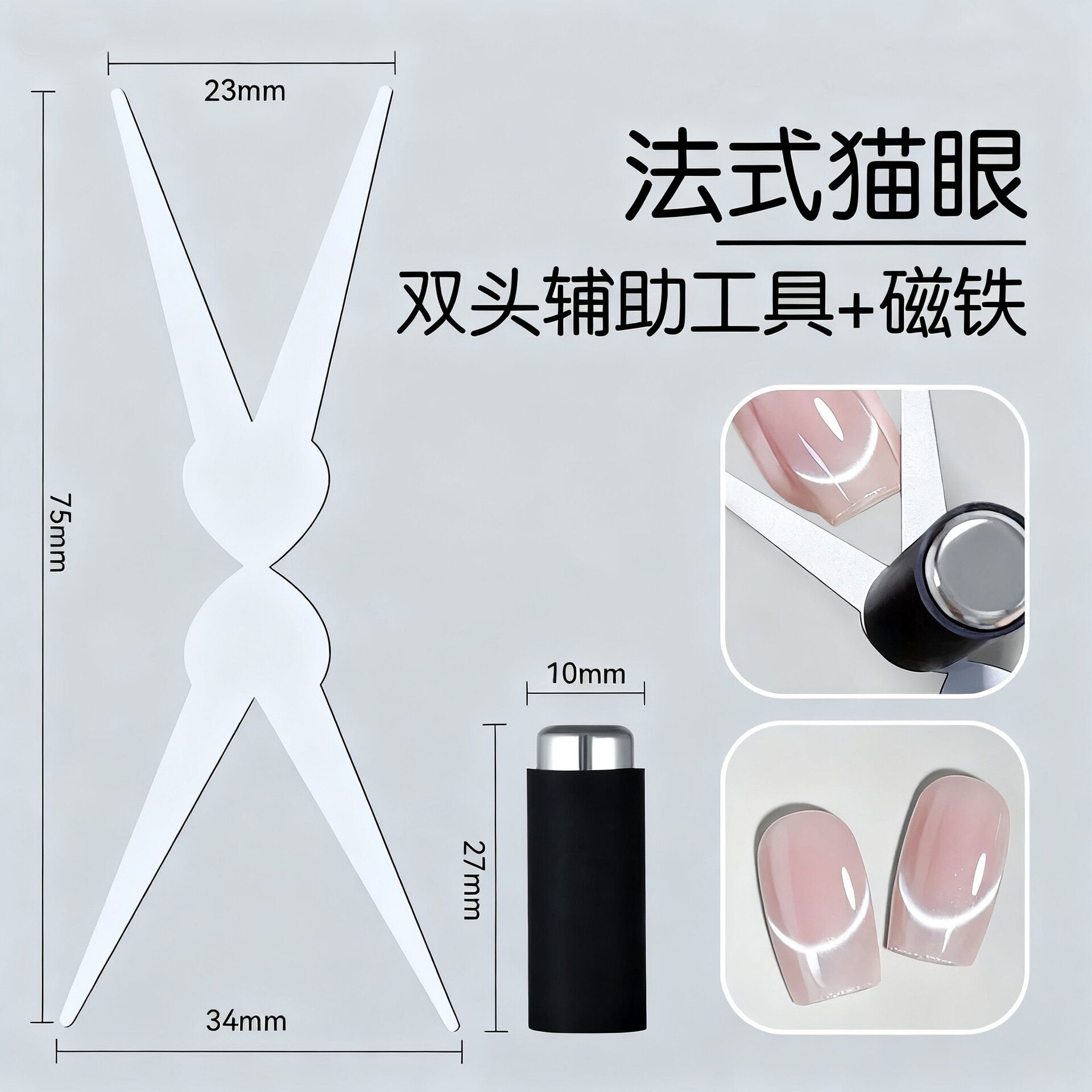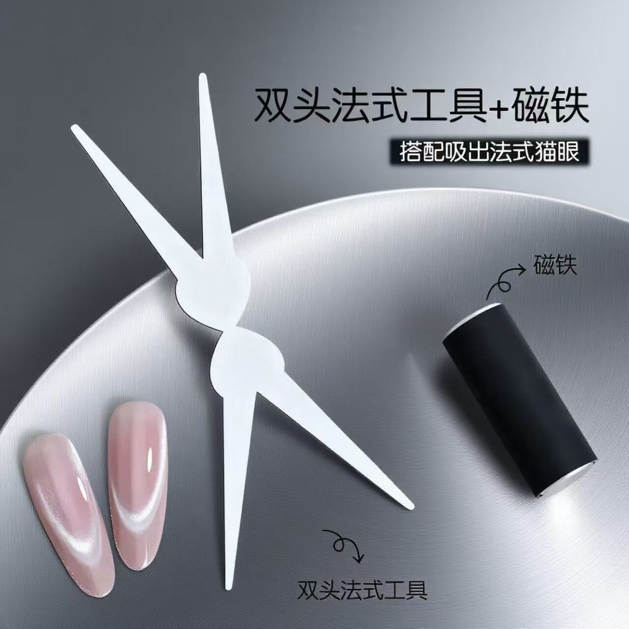 秋冬美甲法式猫眼胶辅助工具剪刀形双头铁片强力圆柱磁铁吸铁石