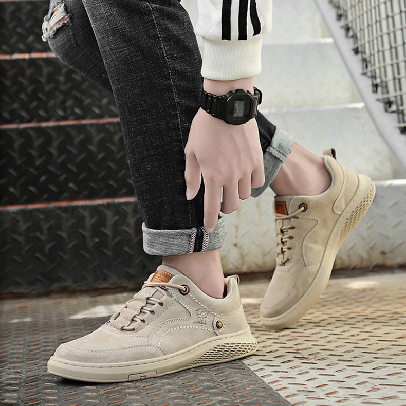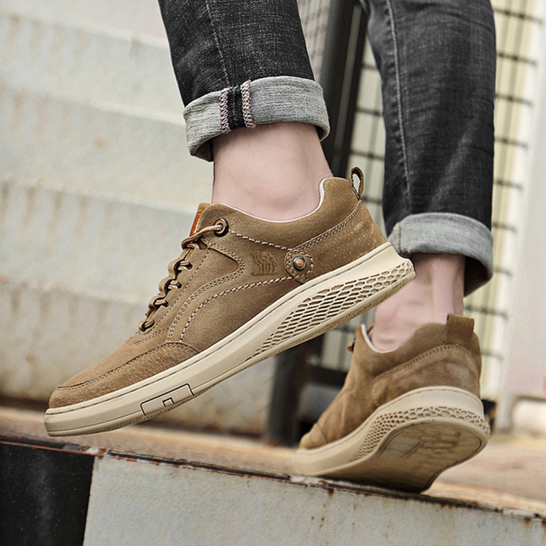 秋季断码清仓骆驼男鞋真皮缝线透气休闲鞋男士磨砂皮鞋子运动板鞋